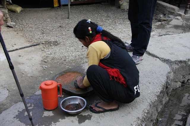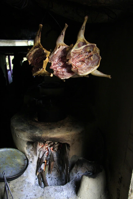 버스가 쉬어가는 휴게소에는 식당이 몇 개 있고 화장실을 쓸 수 있었다. 음식을 준비하는 여인이 음식에 쓸 소스를 만드는 듯한데 사 먹을 용기는 나지 않았다.