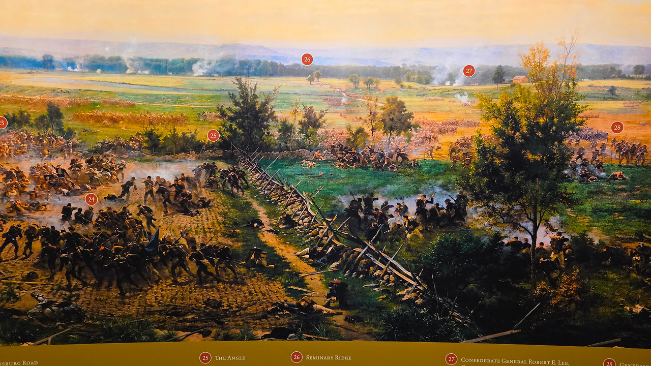 한여름 더위가 기승을 부리는 1863년 7월 1일 리장군이 이끄는 남군은 우리가 전날 지나온 쉐난도어 계곡을 지나 이곳으로 진군했다. 리장군은 육사를 수석으로 졸업한 유능한 군인이었다. 리 장군은 적군의 능력을 알아내 과격하게 공격하는 스타일이었다고 한다. 링컨대통령이 북군을 위해 싸워달라고 간곡하게 부탁했지만 그는 그의 고향을 등질수 없다고 고사했다. 그는 수 백명의 흑인노예를 소유하고 있기도 했다.