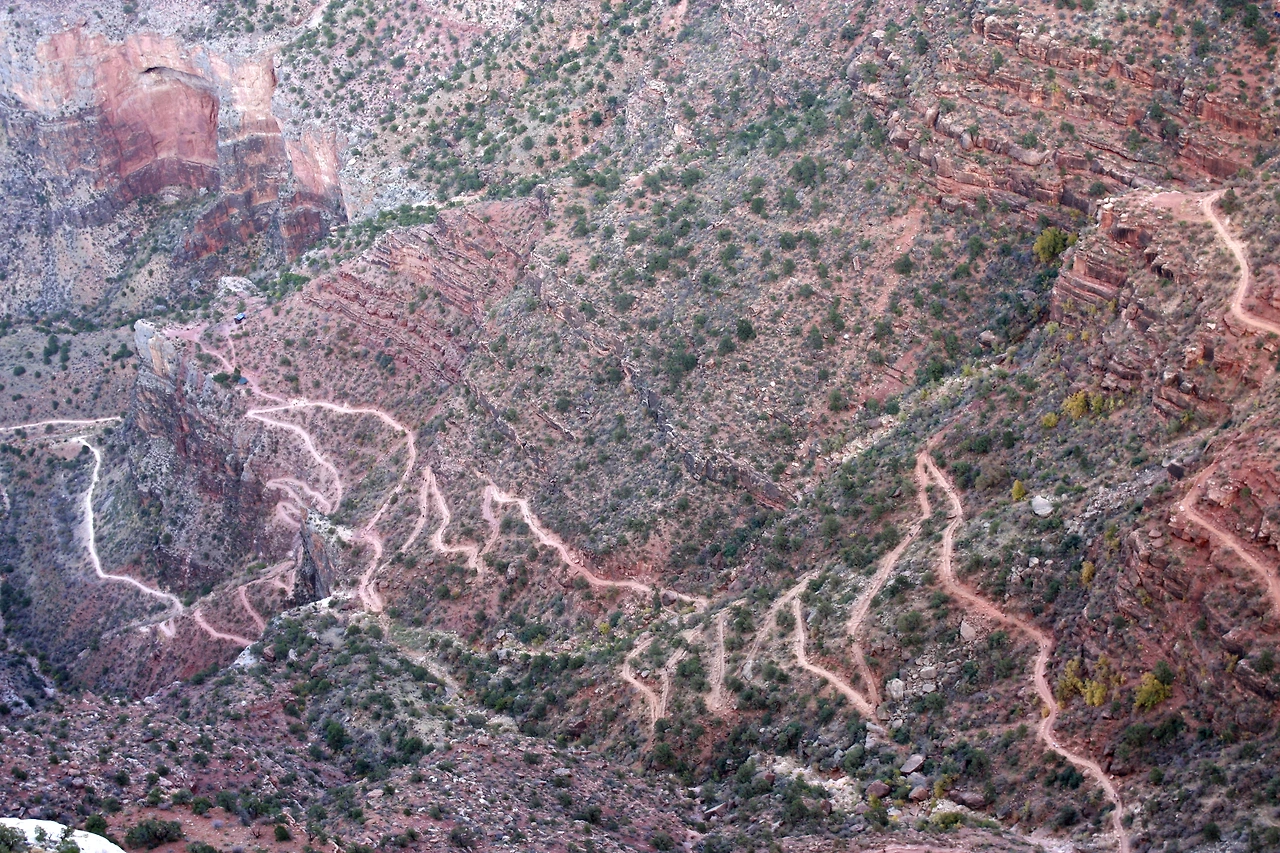 아침에 Bright Angel Trail을 아주 조금 내려가 보았다. 이런 날씨에도 계곡 바닥까지 캠핑하러 가는 사람들도 있었다.