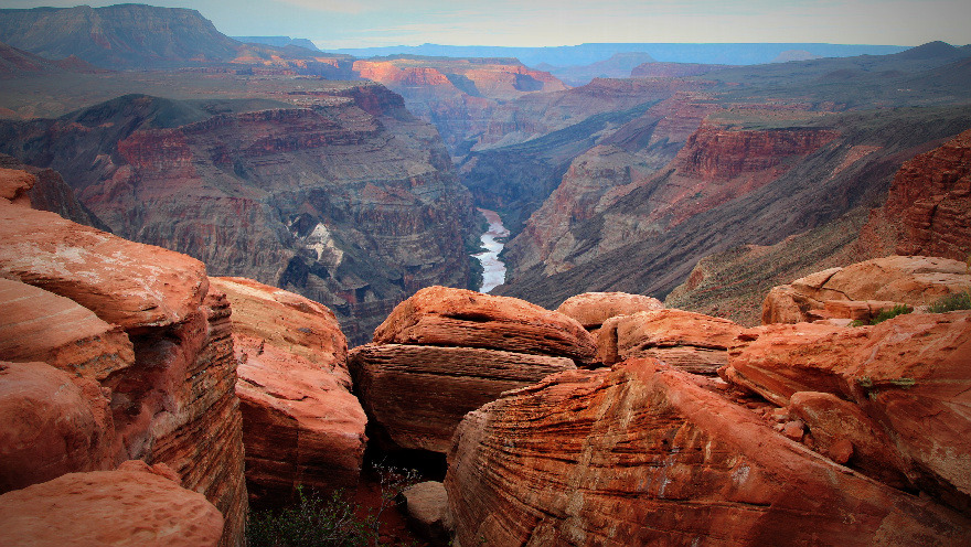 보통 그랜드캐년이라 불리는 사우스림에서 한참 서쪽으로 흘러 내려온 콜로라도강이 절벽 아래로 흘러간다.