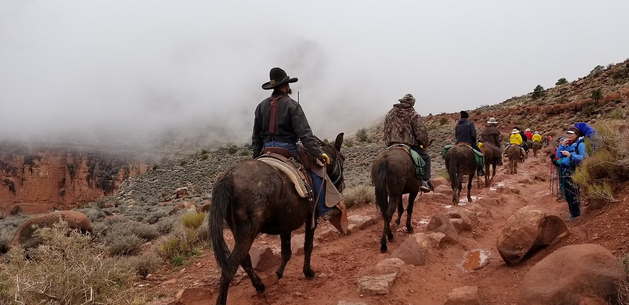 전 날밤을 팬텀랜치에서 보낸 노새(Mule) 팀이 올라간다. 절반쯤 온 것 같다. 경험자에게 들으니 노새 타고 갔다 오는 것이 결코 쉽지 않다고 했다. 어떤 이는 걸어갔다 오는 것보다 더 힘들었다고도 했다. 사람을 등에 태우고 가야 하는 노새는 얼마나 힘들까.