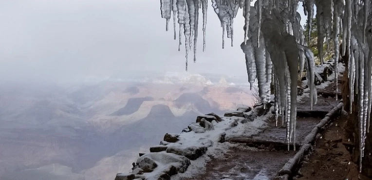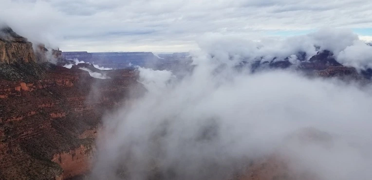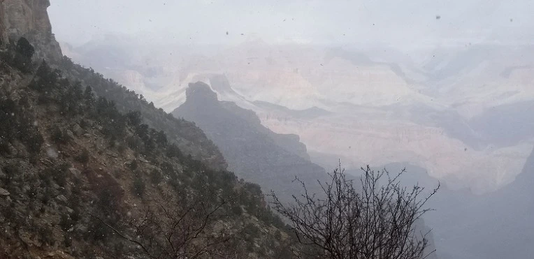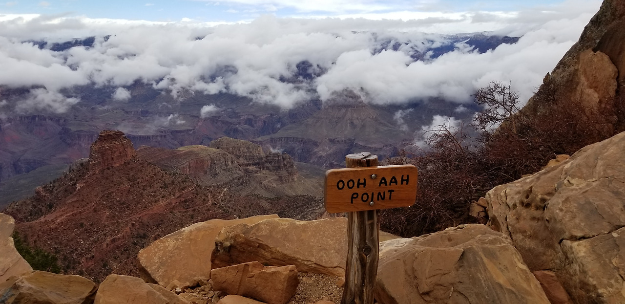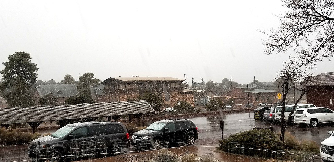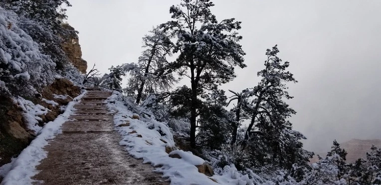 받아논 날은 빨리 온다고했다. 15개월이 지나갔다. 설렘과 두려움으로 기다렸는데 날씨가 험하다.. 전날 밤 그랜드캐년 빌리지에서 자고 아침 8시 사우스 카이밥 트레일 헤드로 가는 셔틀버스에 올랐다.