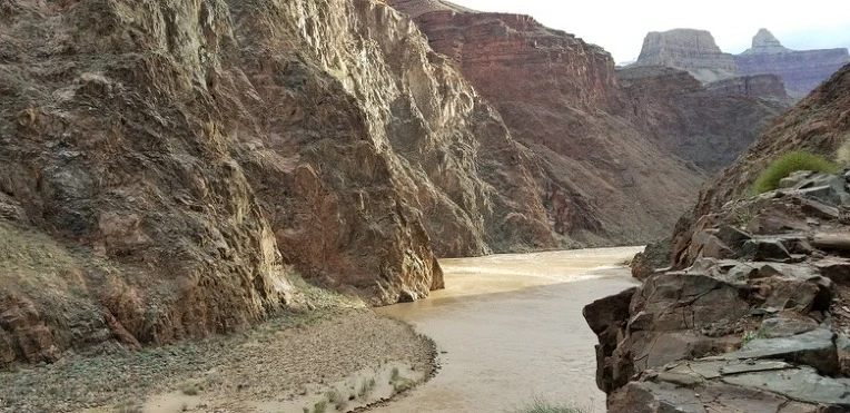 그랜드 캐년을 만드는데 가장 큰 역할을 했고 지금도 하고 있다. 강을 따라가던 트레일이 강에서 멀어지는 순간 돌아보니 강물이 아침 해를 받으며 잠시 황금빛으로 변했다.