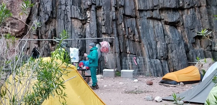 늘 위에서만 내려다보던 캐년을 올려다보니 완전히 다른 느낌이다. 캠핑장비를 등에 짊어지고 혼자 3박 4일 캠핑여행을 하는 70살 된 할머니를 만났다. 도처에 고수들이다.