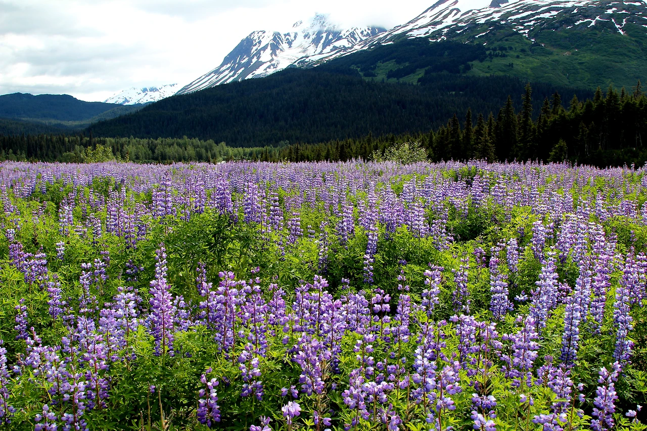 눈 녹은 물을 먹고 피어난 보라색 루 파인은 얕은 산 하나를 가득 덮었다.