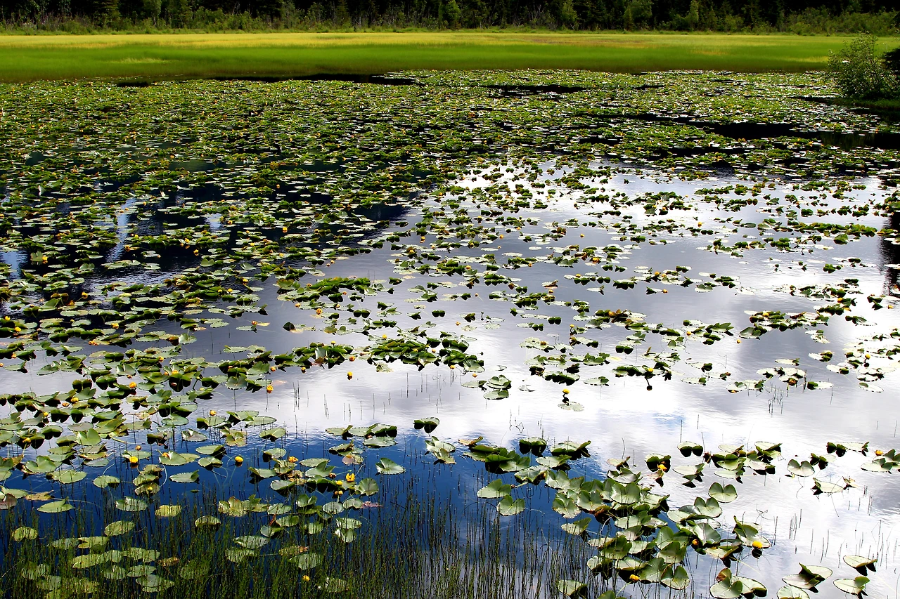 드넓은 연못을 가득 채운 노란 연꽃들,