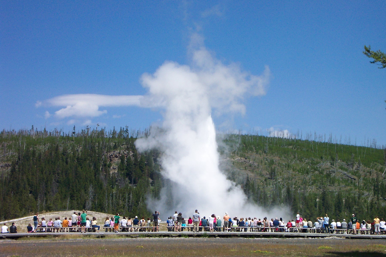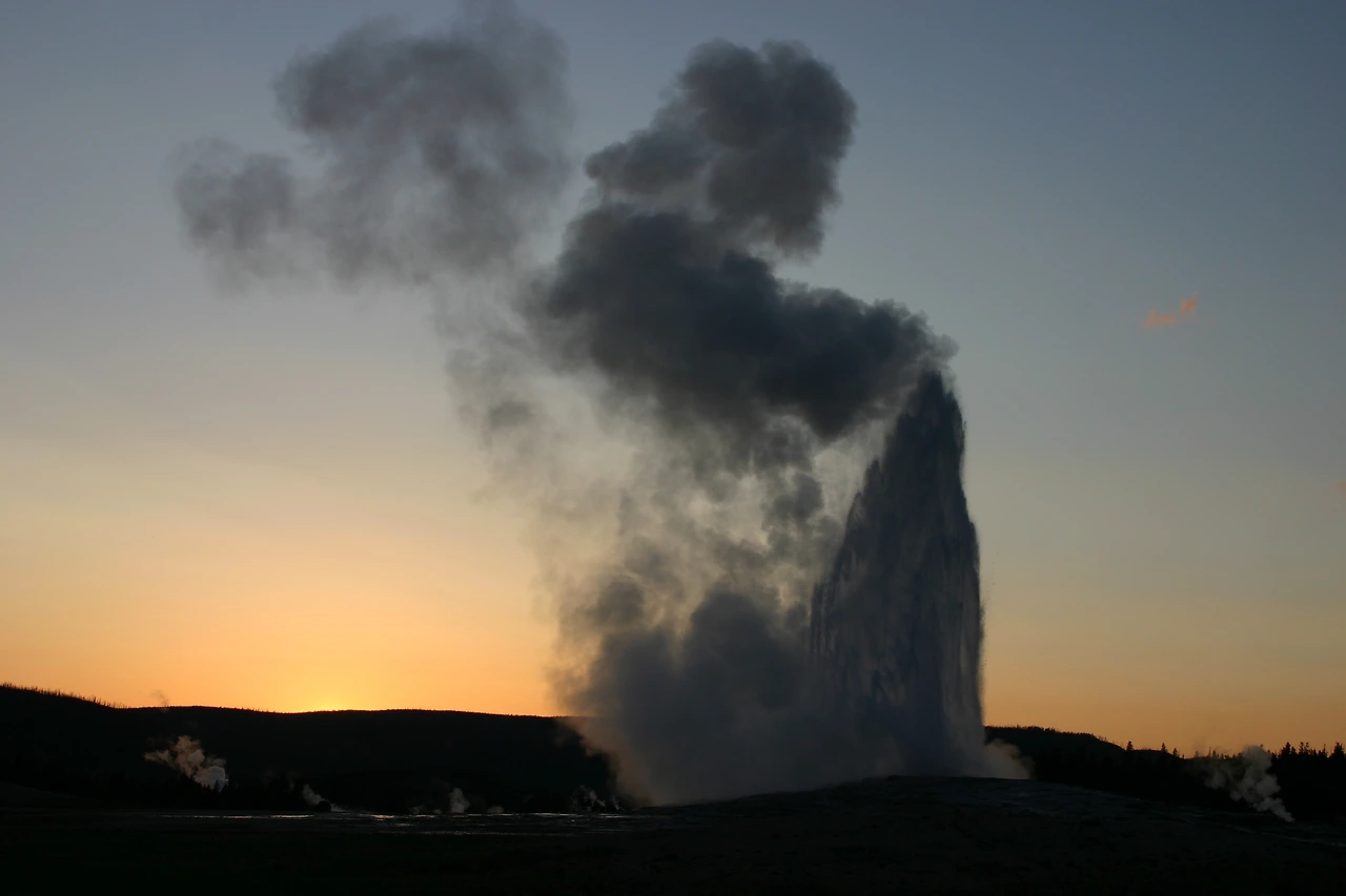 Old Faithful Geyser가 하늘 높이 치솟았다.