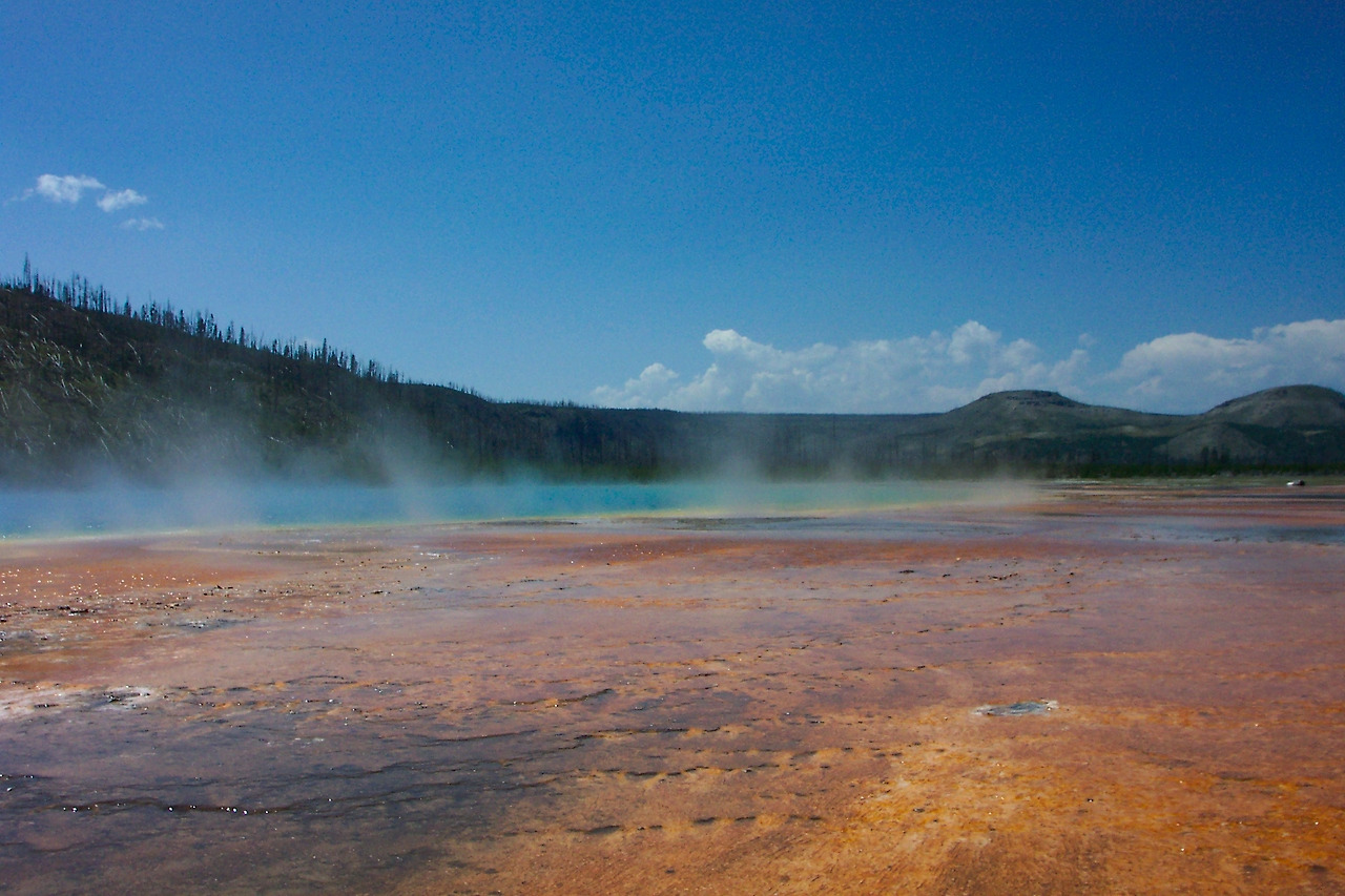 Midway Geyser Basin에서는 물속에서 조용히 솟아오른다.