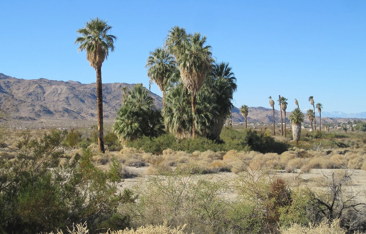 Oasis of Mara의 Twenty nine Palms. 1800년대에는 원주민들이 살았던 오아시스가 그들이 떠난 뒤 금 찾는 사람들과 소키 우는 사람들로 채워졌다. 1940년 어쩐 일인지 우물이 말라 더 이상 오아시스의 역할을 하지 못한다.
