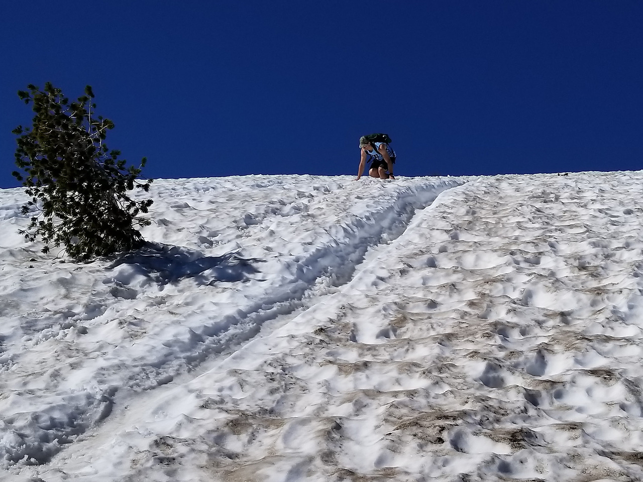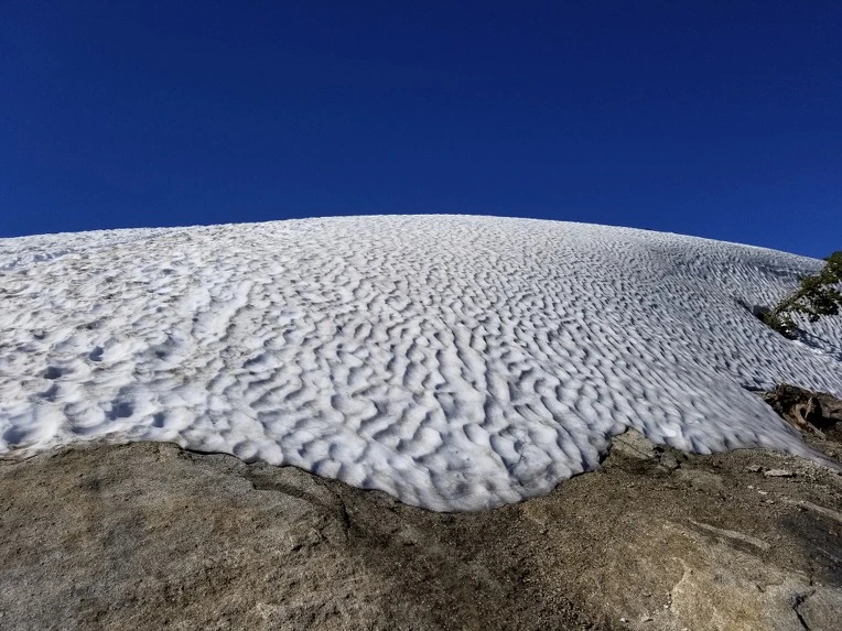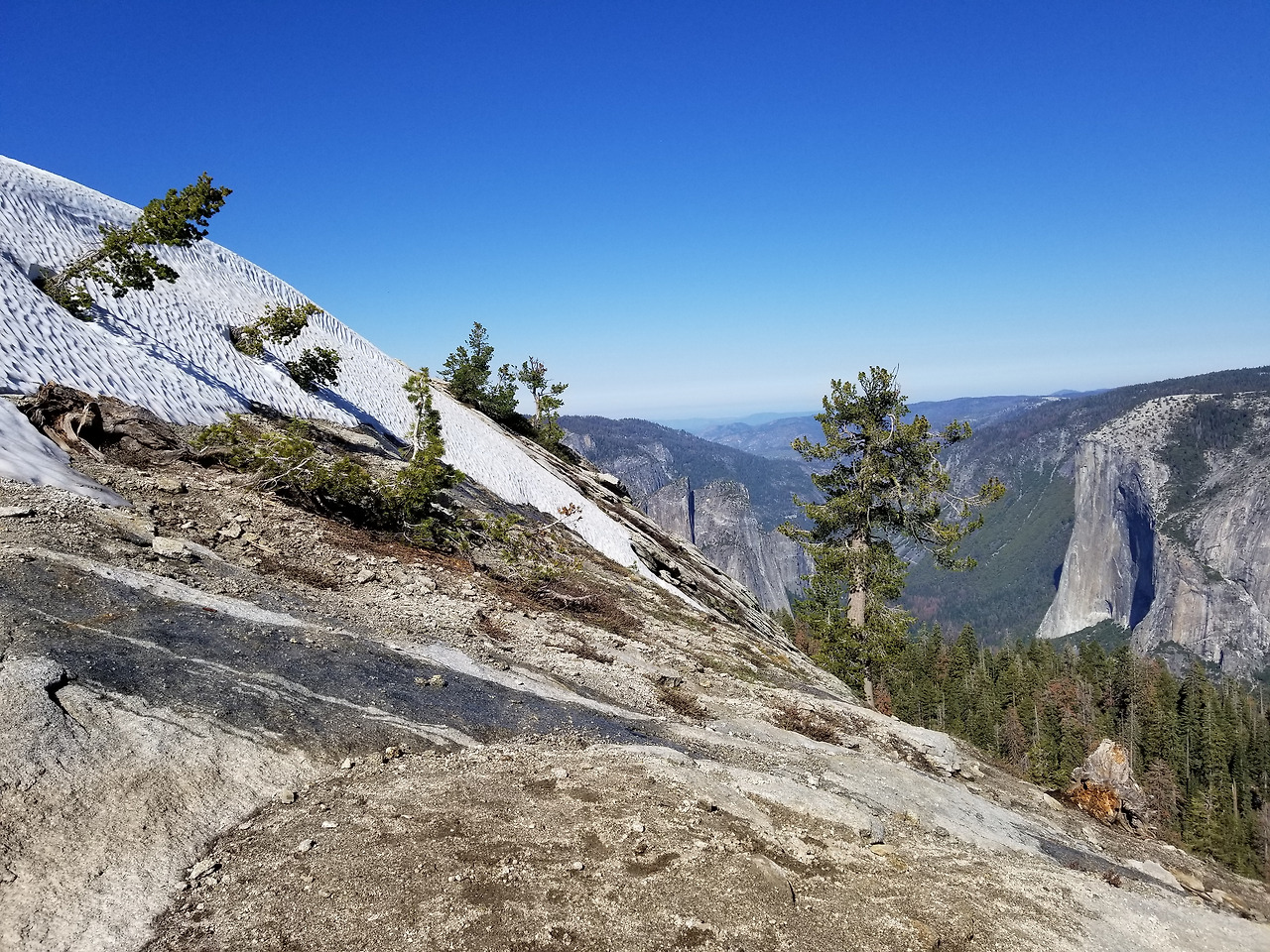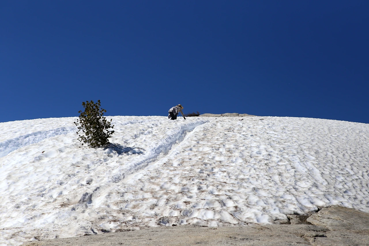 센티넬 돔이다. 따끈따끈하게 덥혀진 남쪽 바위와는 달리 올라가야 할 북쪽 바위에는 눈이 쌓여있다.