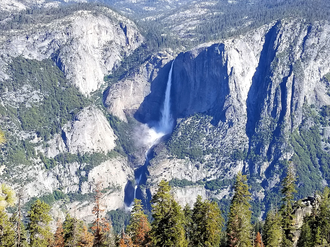 차를 세우고 왼쪽 길로 들어갔다. 테프트 포인트 가는 길이다. 테프트 포인트는 깎아지른 절벽이 있고 거기서는 해프 돔과 엘 카피탄이 내려다 보인 다고 했다. 몇 년 전 요세미티를 사랑하고 모험을 즐기던 남자 둘이 윙슈트(Wing Suit)라는 걸 입고 하강하다 떨어져 사망한 절벽이다.