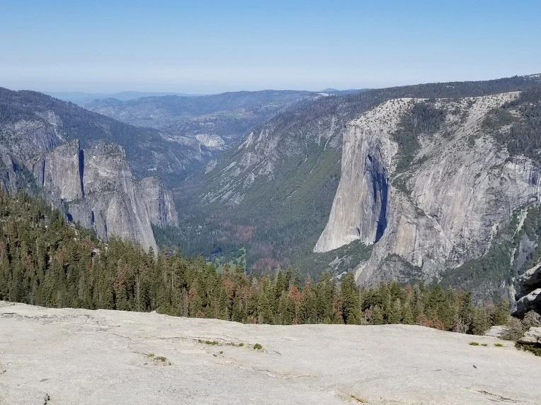 센티넬 돔은 2476미터, 오른쪽은 엘 카피탄, 왼쪽은 캐시드럴 바위. 요세미티 밸리가 다 내 발아래 있다.