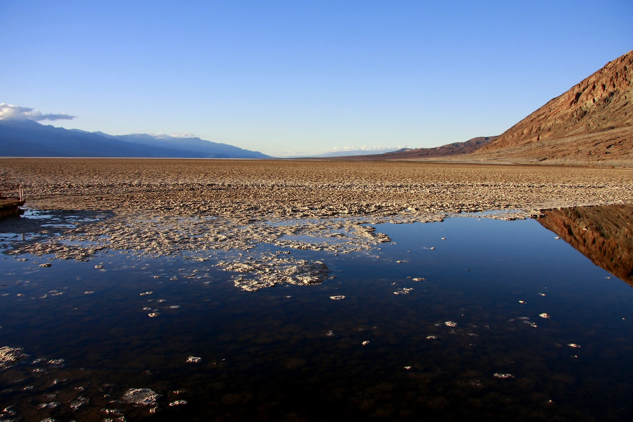 BAD WATER BASIN 은 바다 표면보다 282 ft 낮은 곳에 있는 얕은 호수다.