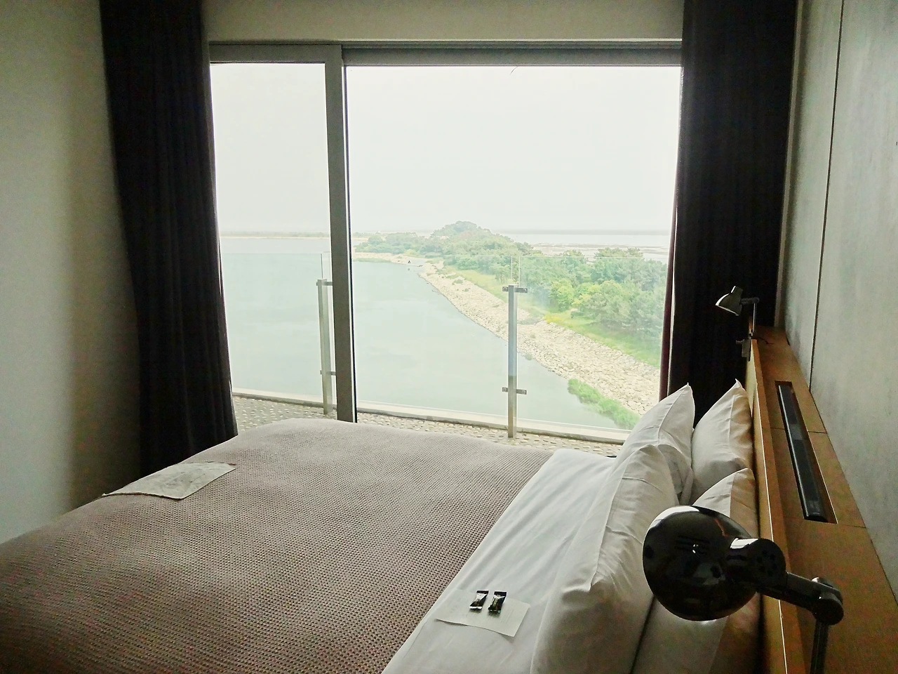 호텔을 둘러싼 평화로운 자연이 참 아름다웠고, 객실 창을 모두 사선으로 낸 독특한 외관이 인상적이었습니다. 호텔 건물이 동남향 부지에 있는데 창을 모두 햇빛이 잘 들어오게 동향 또는 남향으로 내었다 합니다. 객실에서 보는 전망은 어떨까 일출, 일몰이 아름답다는데 실제로 보면 어떨까 궁금해졌습니다.