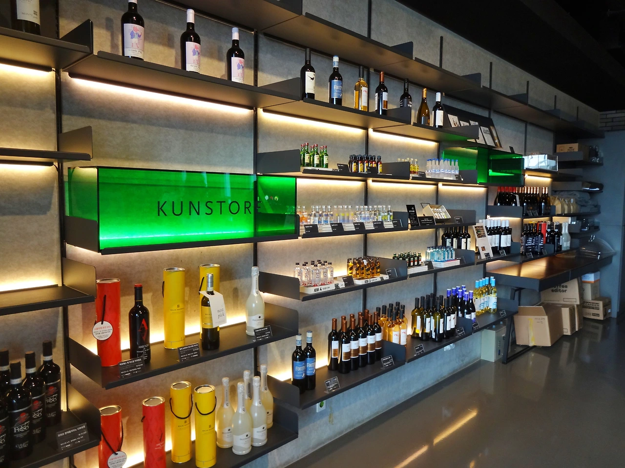감각적인 공간 쿤스트 라운지입니다. 식사, 주류, 음료를 판매하고 다양한 주제의 책도 있어 혼자서도 여럿이도 머물기 좋은 곳입니다. 입구에는 다양한 빵, 케이크를 진열해두었습니다. 아기자기한 꽃다발도 있네요.
