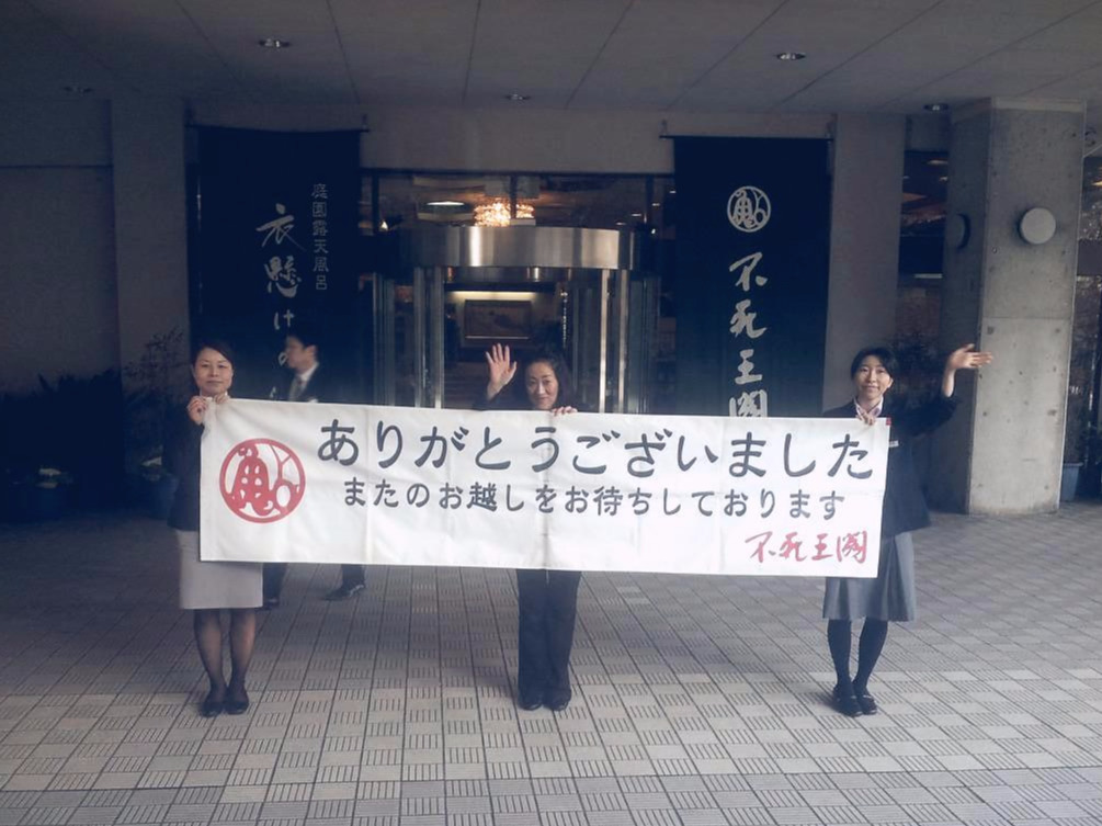 후시오카쿠는 마지막까지 츤데레 기질을 보인다. 역으로 데려다주는 셔틀에 탔다. 창문을 보니 직원들이 나와서 '아리가토고자이마시타' (감사했습니다)라고 쓰인 플랜 카드를 들고 손 흔들고 있다.