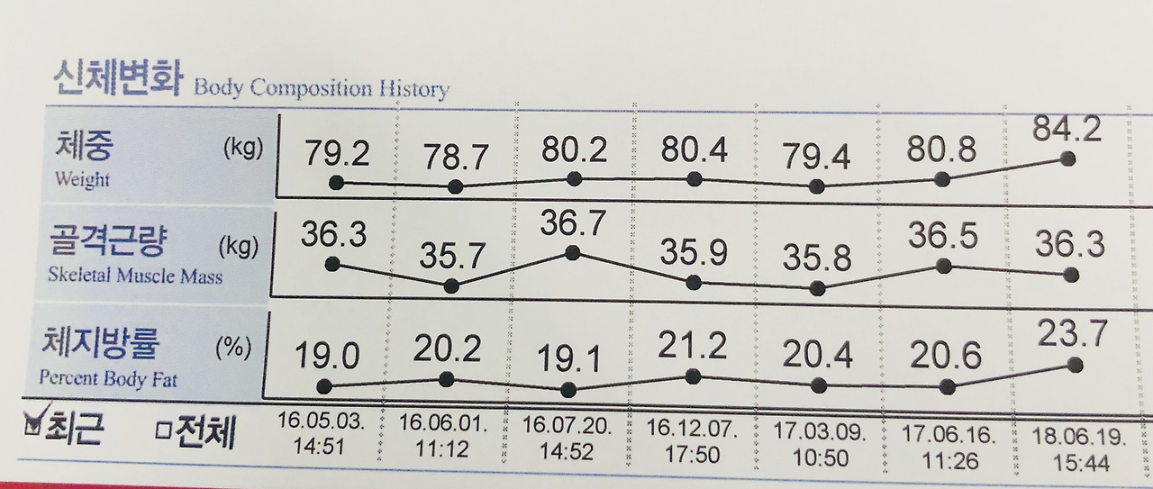 본분을 잊고 매일 맥주를 마셔댔다. 결국 몸의 균형이 무너지고 있다는 게 수치로 나왔다. 다이어트 이후 2년 간 요요 없이 잘 유지해왔다. 최근 무분별한 맥주 섭취로 체지방이 4kg 늘었다. 주식은 다 떨어졌는데 내 몸무게만 올랐다.
