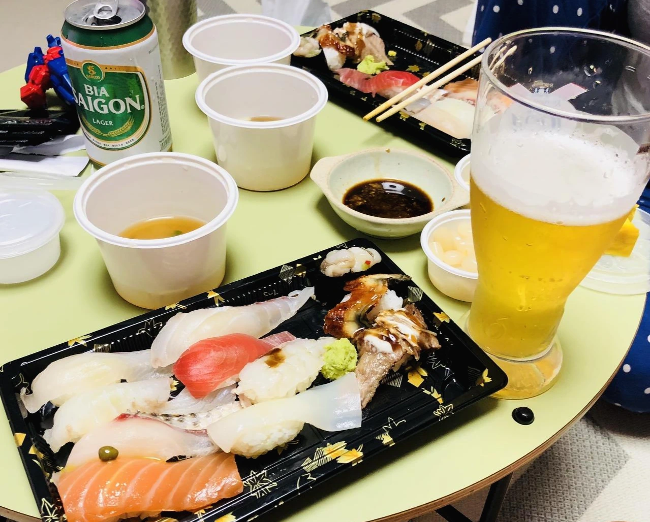 한국전 하는 날엔 전 국민이 치킨에 맥주 먹는다. 일종의 우리나라 고유의 '풍습'처럼 됐다. 치킨 주문은 실패했다. 11시 이후에나 가능하다고 해서 아쉬운 대로 초밥을 시켜먹었다. 스시가 먹다 보면 은근히 느끼하다. '스맥'도 나쁘지 않았다.