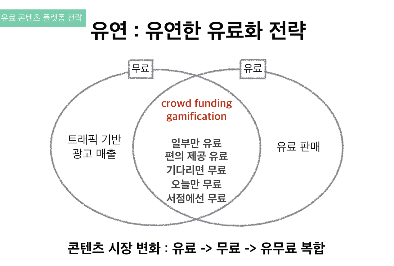 ‘유연한 유료화 전략’은 무엇일까. 콘텐츠 유료화를 고민할 때, 보통은 유료와 무료의 양극단만 생각하게 된다. 유료 판매를 할 것인가, 무료로 보여주고 광고 등 다른 비즈니스를 할 것 인가 고민한다.