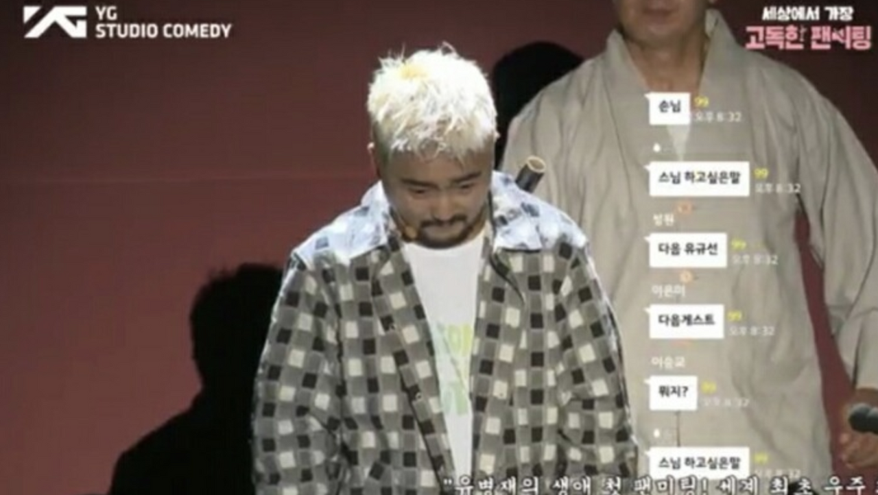 유병재 씨의 차진 드립에 누군가가 큰 소리로 웃기라도 하면 스님 복장을 한 스태프가 뒤에서 죽비를 내려쳤다. 묵언수행을 방불케 했지만, 채팅방은 쉴 새 없이 북적였다. 말은 없었지만 할 건 다 했다. 카카오톡으로 팬들과 게임을 했다. 소리 안 내고 밥도 먹었다. 음악 없이 한 달간 연습한 빅뱅의 ‘뱅뱅뱅’도 췄다. 군대 간 빅뱅을 내세워 그의 소속사인 YG를 ‘깨알 홍보’하는 모범 사원의 자세도 보였다.
