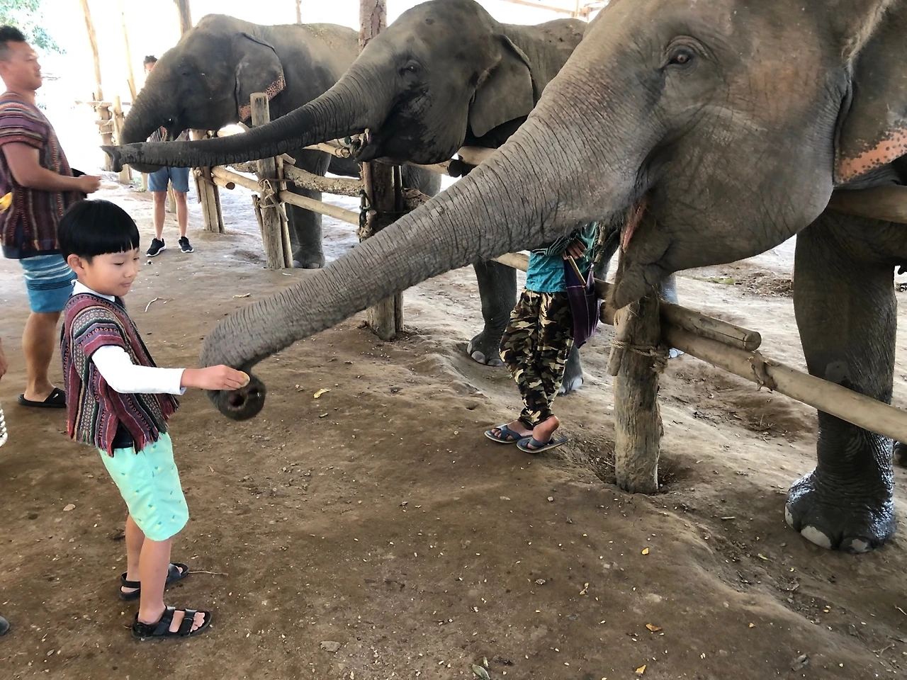 코끼리를 만지기도 했다.
