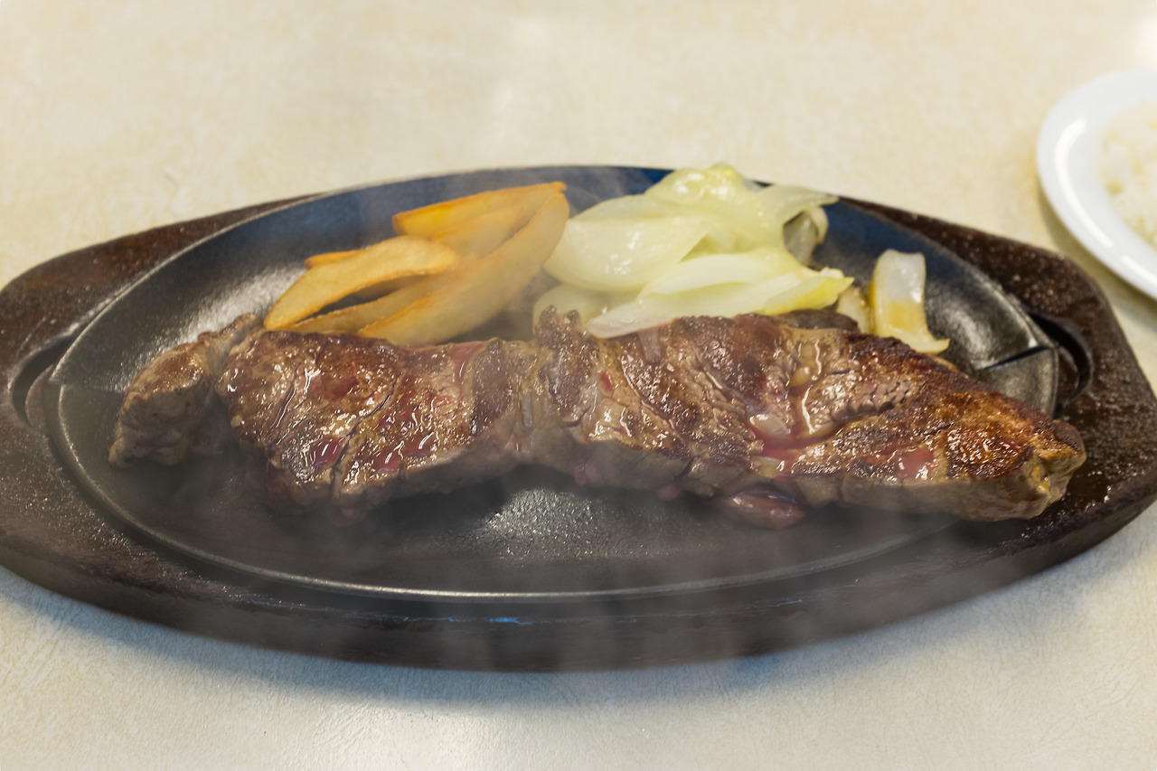 스테이크 종류는 크게 두 가지로 텐더로인 스테이크(2,100엔 / 2,300엔 / 2,500엔)와 뉴욕 스테이크(1,700엔 / 1,900엔)가 있다. 텐더로인 스테이크는 지방이 적은 안심 부위를 사용한 스테이크, 뉴욕 스테이크는 지방질이 많은 등심 부위를 사용한 스테이크다. 원하는 고기와 양을 선택했다면 고기의 굽기 정도를 고르자. 그리고 마지막으로 밥 또는 빵을 선택하면 주문이 완료된다.