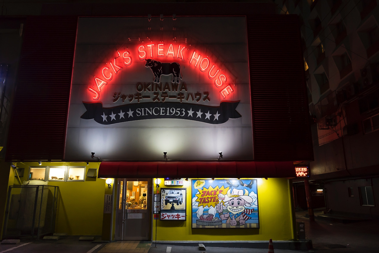 제2차 세계대전이 끝나고 얼마 되지 않은 1953년에 문을 연 원조 스테이크집이다. 오키나와는 전후 1972년까지 미군정의 통치를 받으면서 미국산 제품이 많이 수입되었는데, 그중 하나가 바로 미국산 소고기다. 미군들에게 제공하기 위해 미국산 소고기가 별도의 세금 없이 저렴하게 수입되었고, 이 소고기를 이용한 스테이크집이 하나둘씩 생겨났다. 잭스 스테이크 하우스도 그중 하나로 1950년대부터 이어져 온 오키나와 원조 철판 스테이크집으로 유명하다.