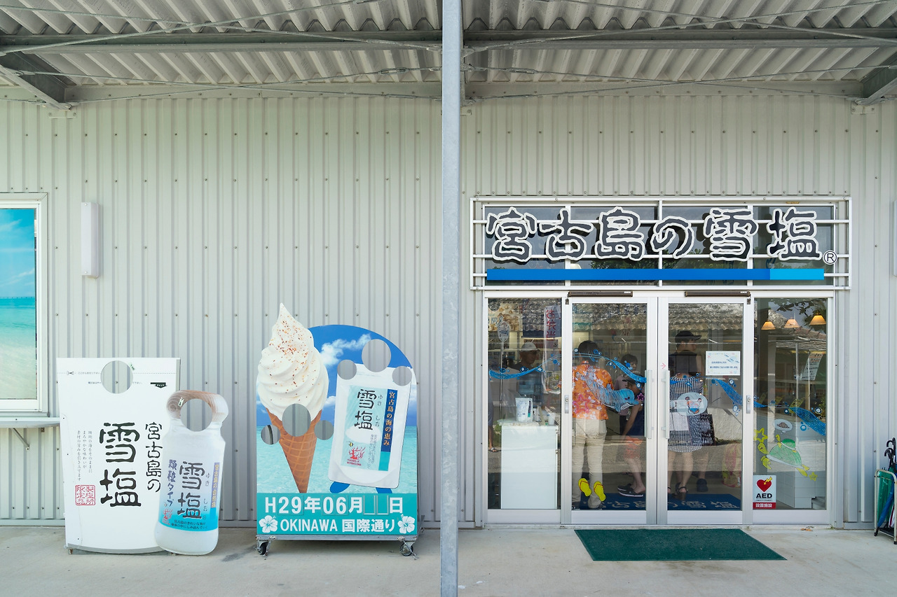 ‘눈 소금’으로 불리는 유키시오는 미야코지마를 대표하는 특산품이다. 지하 22m의 깊은 산호 석회암층에서 해수를 끌어올려 소금을 만드는데, 이 해수에는 18종에 달하는 풍부한 미네랄 성분이 함유되어 있다. 2000년에는 ‘세계에서 가장 미네랄 함유가 많은 소금’으로 기네스북 인정을 받았을 만큼 불순물 없는 깨끗한 소금이다. 미야코지마의 북쪽 끝 이케마지마로 넘어가기 전 니시노하마 비치( 西の浜ビーチ ) 앞에 유키시오 소금을 만드는 제염소와 유키시오 박물관( 雪塩ミュージアム )이 위치해 있다. 유키시오 소금이 만들어지는 과정을 볼 수 있고, 유키시오 소금 관련 제품들을 구매할 수도 있다.