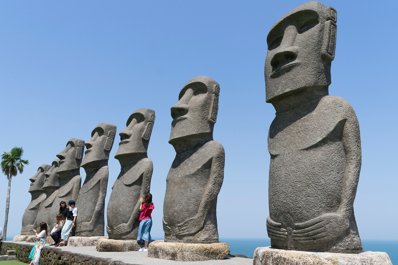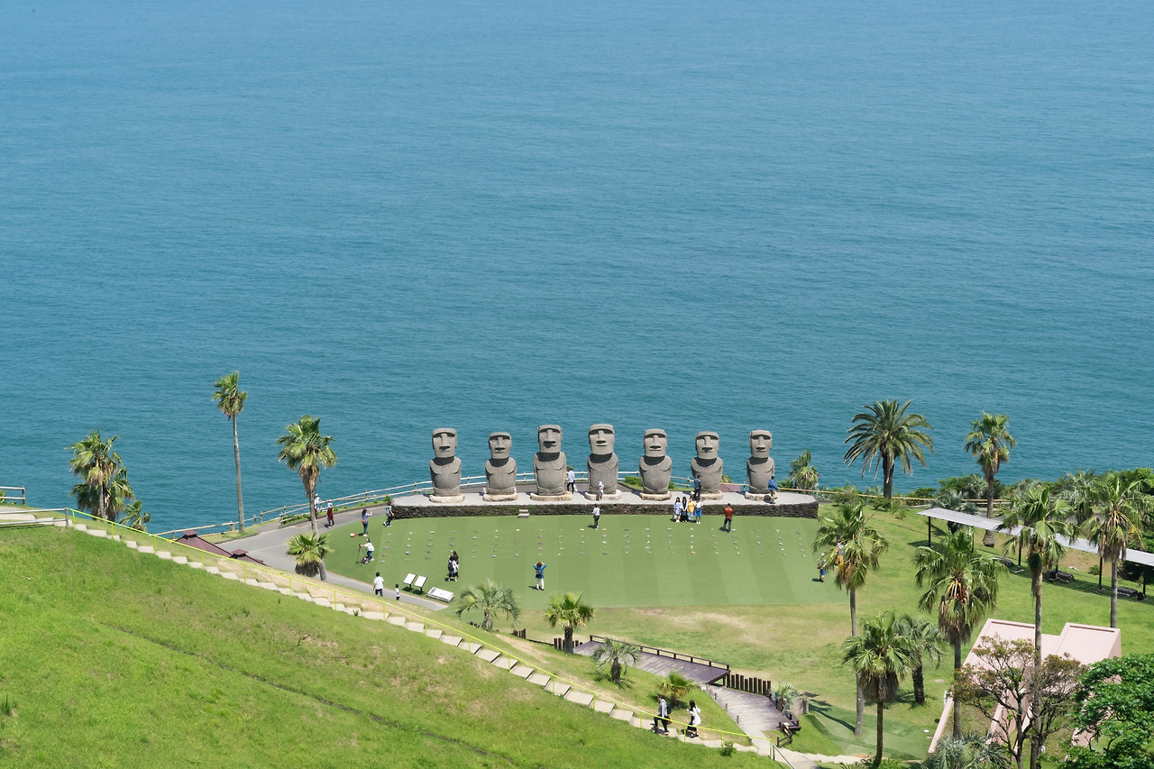 규슈 남단 미야자키 해안에 서 있는 모아이 석상