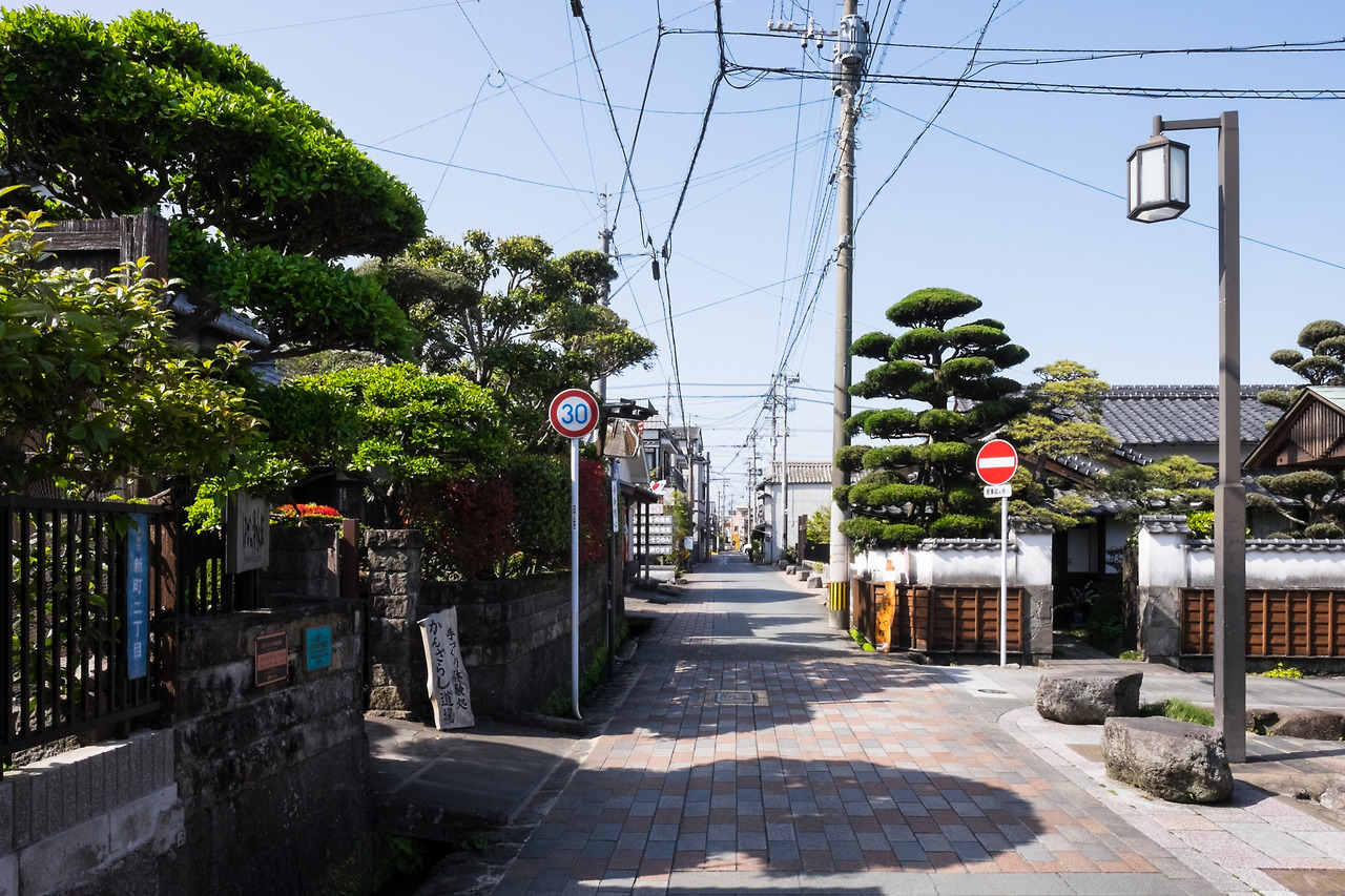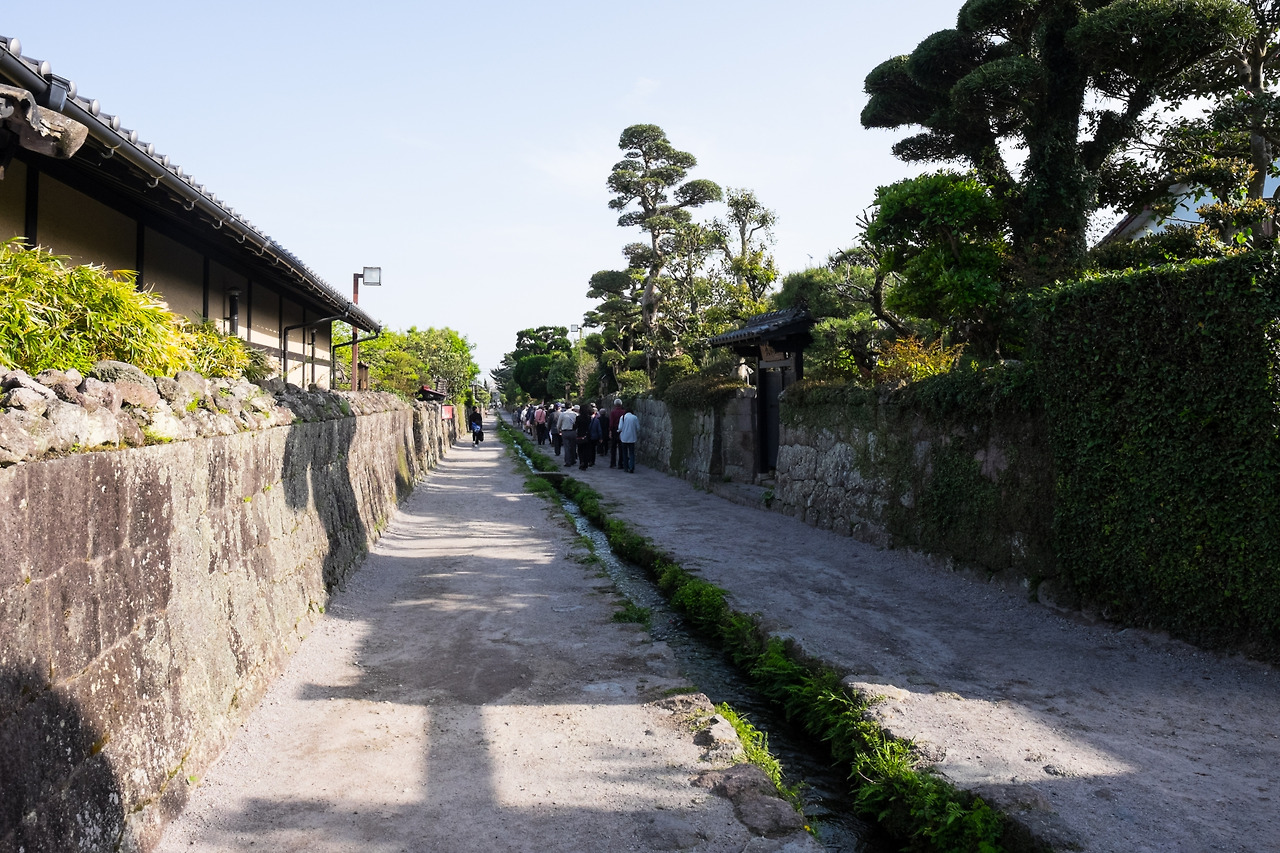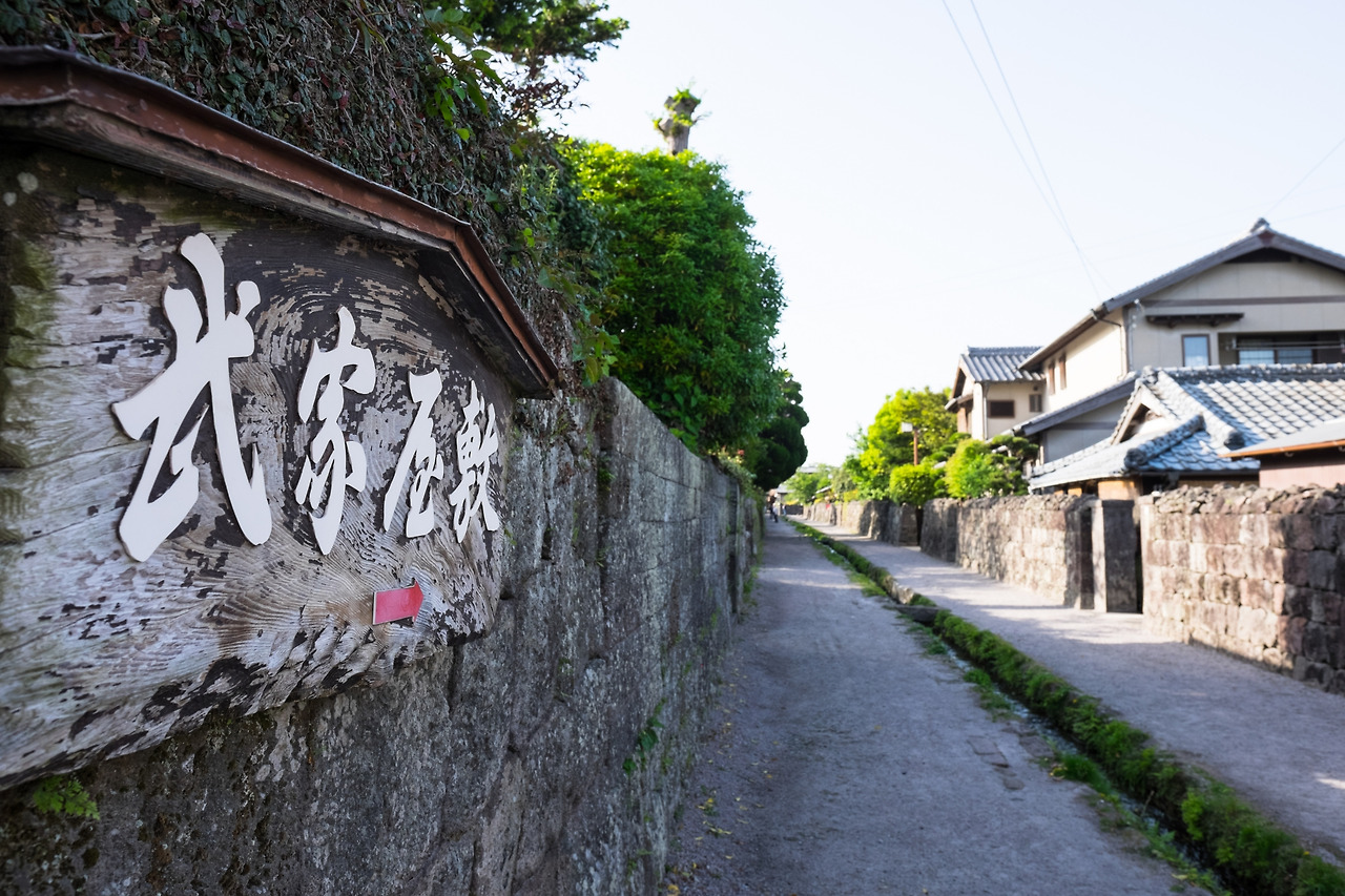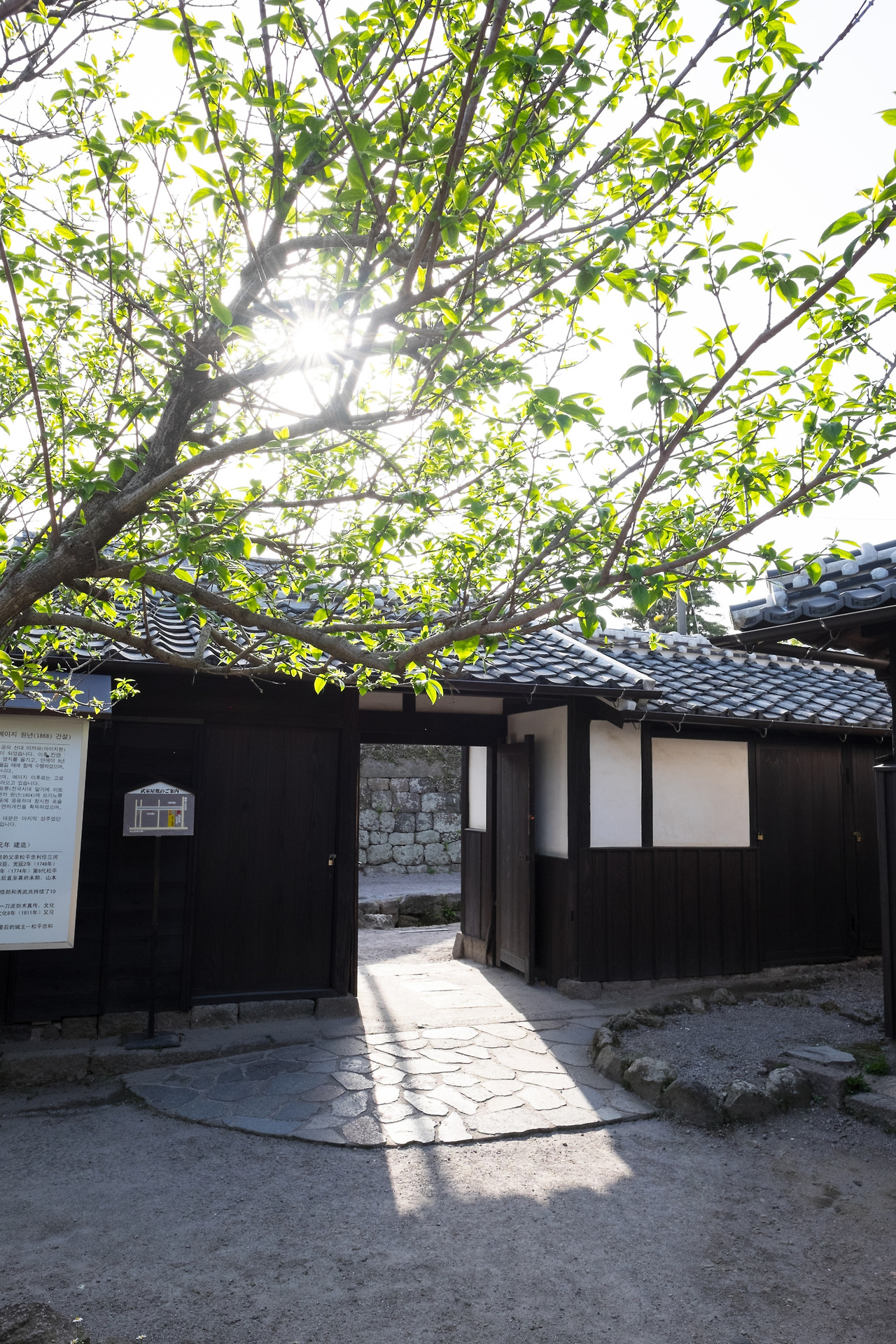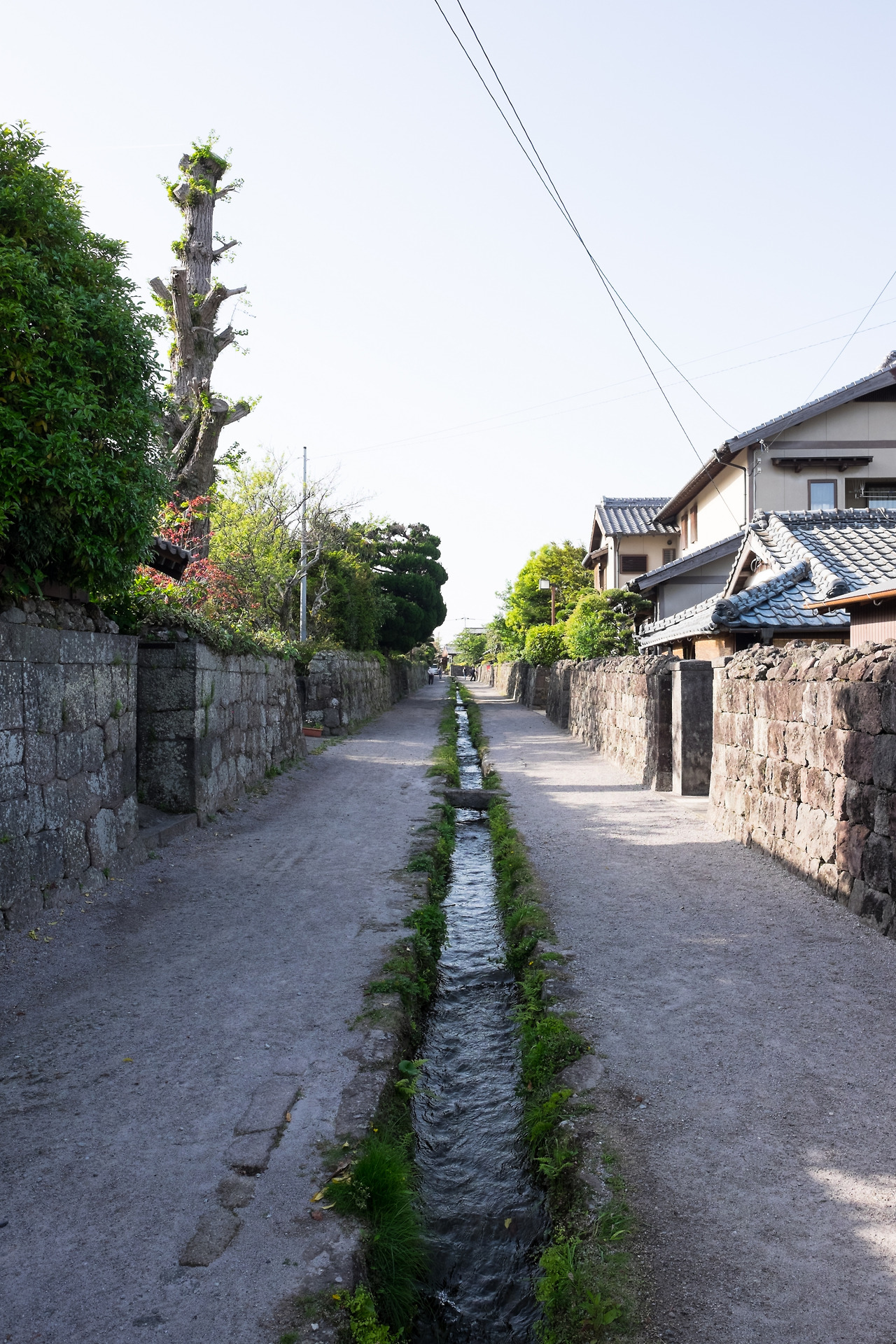 시마바라 성에서 내려와 해자(垓字)를 따라 오른쪽으로 걷다 보면 부케야시키 (무가 주택터)로 향하는 이정표를 만나게 된다. 과거 시마바라 성 축성 시기 (1618~1624년) 하급 무사들이 머물던 주택가로 현재 세 채의 집이 보존되어 무료로 개방 중이다. 부케야시키에 들어서면 길 정중앙을 관통하는 수로가 가장 먼저 눈에 띈다. 현재 남아 있는 수로의 길이는 406.8m로, 과거 마을의 식수로 사용하기 위해 수로를 길 한가운데 만들었다고 한다. 수로가 중앙선처럼 쭉 뻗어 있고, 양쪽에는 오래된 돌담이 쌓여 있어 과거 마을의 모습이 어땠을지 머릿속에 그려진다. 돌담 뒤로는 현재 시마바라 주민들이 살고 있는 집들도 다닥다닥 붙어 있어 과거와 현재가 공존하고 있는 듯한 분위기를 자아낸다.
