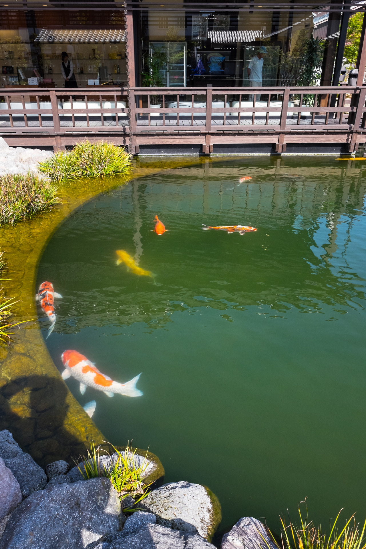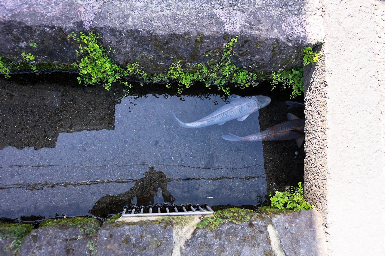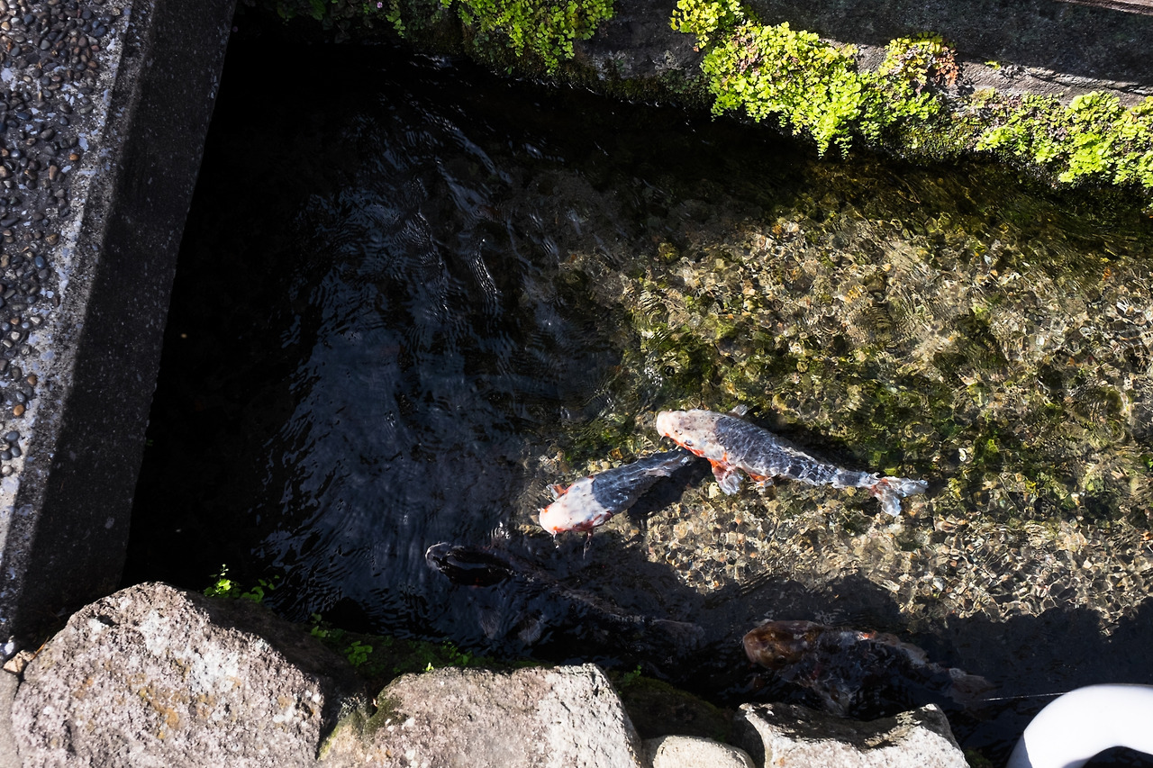 수로에 있는 잉어는 비단잉어로 몸에 알록달록한 무늬와 색깔이 있어 관상용으로 많이 키우는 종류다. 얼마나 오랫동안 마을 수로에서 자랐는지 모든 잉어가 성인 팔뚝만 한 크기를 자랑한다. 수로가 좁게 느껴질 정도. 일반 주민들이 이용하는 마을 수로에 이렇게 커다란 잉어들이 아무렇지도 않게 헤엄치고 있다는 게 신기하기만 하다. 잉어가 헤엄치는 수로의 길이는 약 100m 정도다. 가볍게 산책 삼아 수로를 따라 걸으며 정감이 느껴지는 일본 시골 마을의 주택과 돌담을 둘러보자. 코이노오요구마치 내에는 잠시 쉬어갈 수 있는 용수정원 시메이소(湧水庭園 四明荘)와 시마바라 용수관(しまばら湧水館)이 있다.