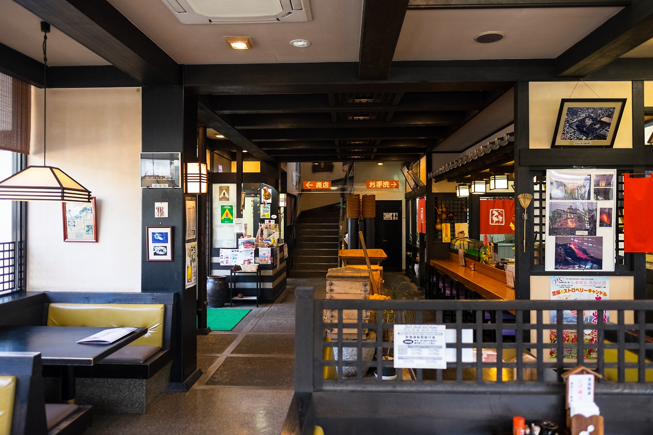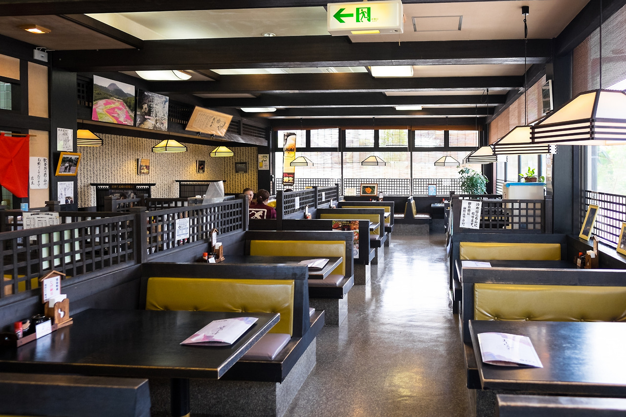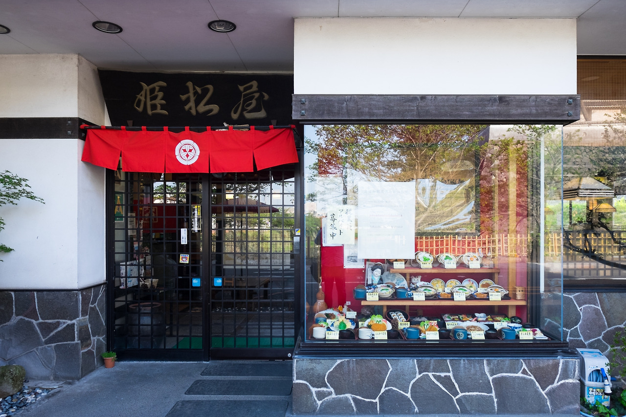구조니(980엔)는 가다랑어와 다시마를 우린 국물에 세 종류의 어묵과 붕장어, 우엉, 계란, 표고버섯, 연근, 쑥갓, 닭고기, 두부 등 13가지의 재료를 넣고 끓인 요리로 뚝배기에 담겨 나온다. 모양새는 우리나라의 떡국과 비슷하다. 하지만 떡이 매우 찰지고 입에 달라붙기까지 한다. 국물 또한 가다랑어와 다시마를 기본으로 했기 때문에 시원하다. 오뎅에 찰떡과 채소를 더해 끓인 맛이라고 생각하면 된다. 이곳은 시마바라를 방문하는 단체관광객들도 많이 찾는 식당인 만큼 규모가 꽤 크다. 1층은 테이블 석이 넓게 있고, 2층은 다다미방으로 주로 단체 손님들이 찾는다. 가게 뒤편에 넓은 주차장이 있고, 구조니 외에도 회 정식, 튀김 정식, 생강 구이 정식, 돈가스 등 우리에게도 익숙한 일본 음식들이 많이 있어 입맛대로 골라 주문할 수 있다. 가게 앞에 음식 모형을 전시해놓았다. 가게에 들어서기 전 미리 어떤 메뉴를 시킬지 골라보자.