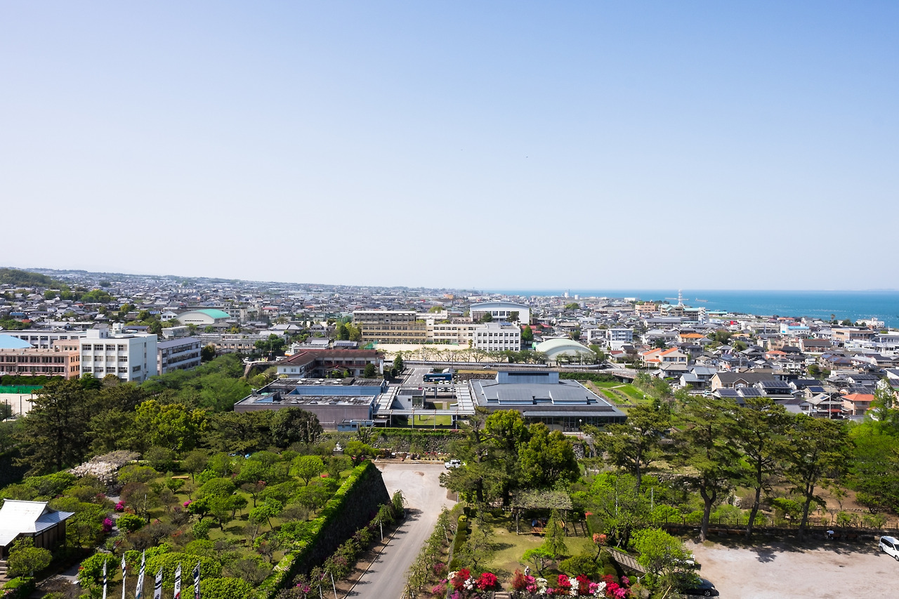 시마바라의 대표 유적지인 시마바라 성. 에도막부 시대 시마바라의 번주였던 마츠쿠라 시게마사(松倉重政, 1574~ 1630)에 의해 1618년부터 7년 동안 축성되었다. 시마바라와 같은 소도시에 지어진 성 치고 상당한 규모다. 성 외곽의 해자(垓字)와 커다란 벽돌로 쌓은 높은 성벽, 그리고 5층 높이의 천수각까지 작은 도시에 이렇게 큰 성이 있다는 게 놀랍다. 시마바라 성으로 들어가는 언덕길을 지나 천수각 앞 주차장에 들어서면 어디선가 “곤니치와(こんにちは)”라고 외치는 소리가 크게 들린다. 에도 시대 전통 복장을 한 직원이 방문객을 맞이하는 인사다. 성을 방문하는 여행자가 올 때마다 우렁찬 목소리로 인사를 하며 손을 흔든다. 다소 시골스러운 접대 같지만 인사 소리를 들으니 시마바라를 찾길 잘했다는 마음이 든다.