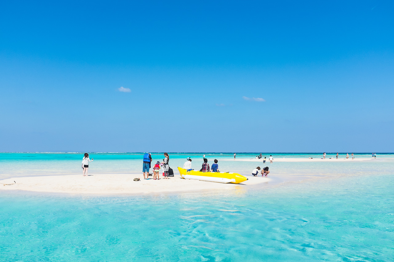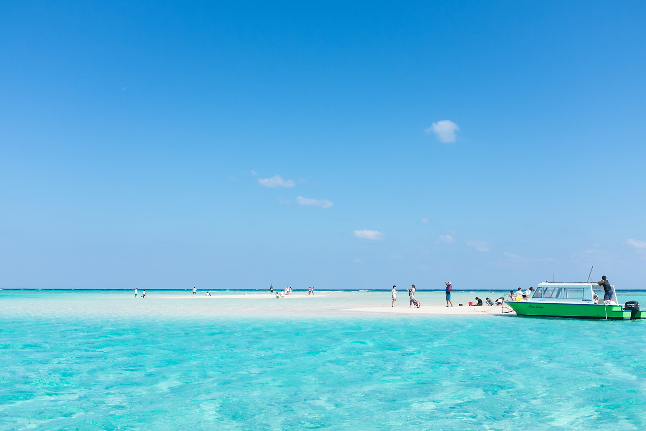 이렇게 바닷물이 빠져 나타나는 해변을 샌드바 해변 또는 모래톱이라고 부르는데, 영화 캐리비안 해적을 촬영한 하와이의 카네오헤 베이(Kaneohe Bay)가 이와 같은 해변에 속한다. 유리가하마로 가기 위해서는 오가네쿠 해안에서 글라스보트를 타야 한다. 보트를 타고 약 1.5km를 달리면 바다 위에 사람들이 서있는 모습을 볼 수 있다. 바닷물이 빠지면서 10~20cm 높이의 모래 해변이 생기는데, 마치 바다 한가운데 또 다른 육지가 생긴 것 같은 신비한 광경이다.