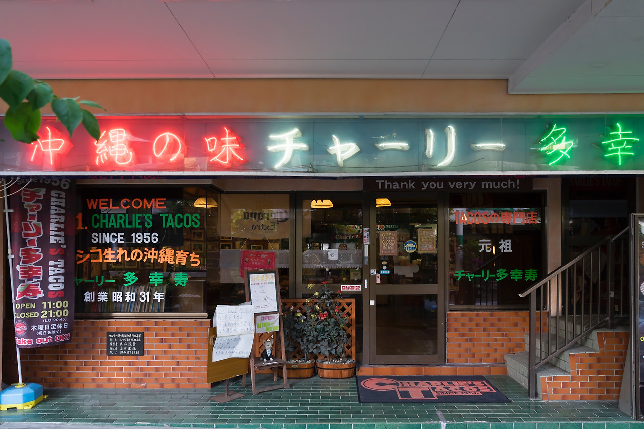 찰리스 타코스는 1956년에 문을 연 오키나와 최초의 타코 가게로 2018년 기준 창업 62년을 맞이한다. 찰리스 타코스가 위치한 파크 애비뉴는 한때 번화했던 거리로 이제는 사람들의 발걸음이 끊겨 문을 닫은 가게가 많이 보인다. 쓸쓸한 옛 번화가에서 유독 화려한 불빛을 내뿜는 찰리스 타코스에는 원조 타코 맛을 그리워하는 사람들의 발길이 꾸준히 이어지고 있다. 가게 내에는 과거의 영광을 기억하듯 오래된 사진들이 곳곳에 붙어 있고, 유명인들의 사인도 빼곡히 걸려 있다.
