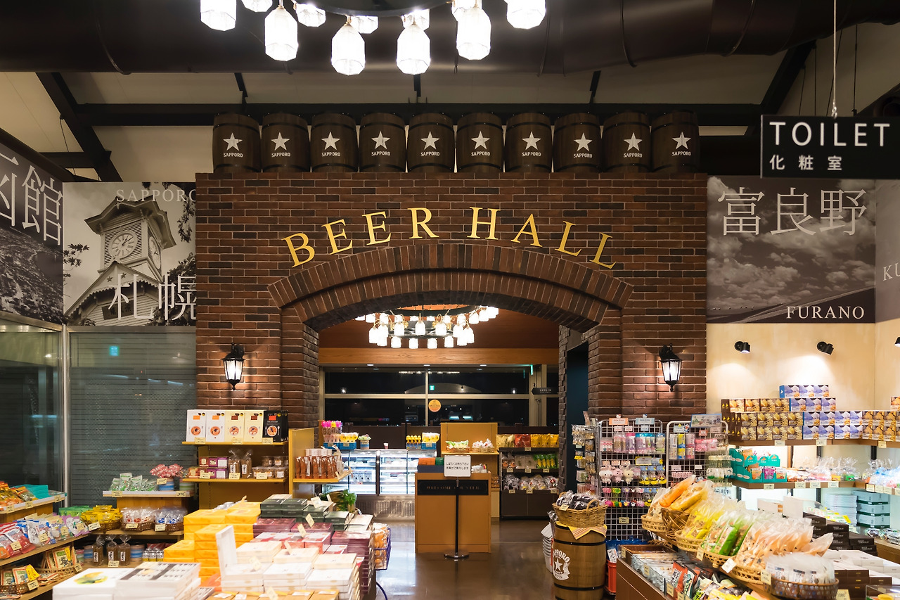 맥주 공장을 나와 수로를 따라 조금만 걸으면 히타 모리노비루엔 입구가 보인다. 입구 앞에는 풍요와 행운을 상징하는 에비스 동상이 세워져 있다. 안으로 들어서면 홋카이도산 과자와 기념품이 잔뜩 진열되어 있다. 그리고 그 안으로 500석 규모의 홀이 펼쳐진다. 삿포로 맥주를 상징하는 황금별이 벽면 중앙에 붙어 있고, 창밖으로는 맑은 강이 흐르는 히타 시내의 전경이 파노라마로 펼쳐져 있다.
