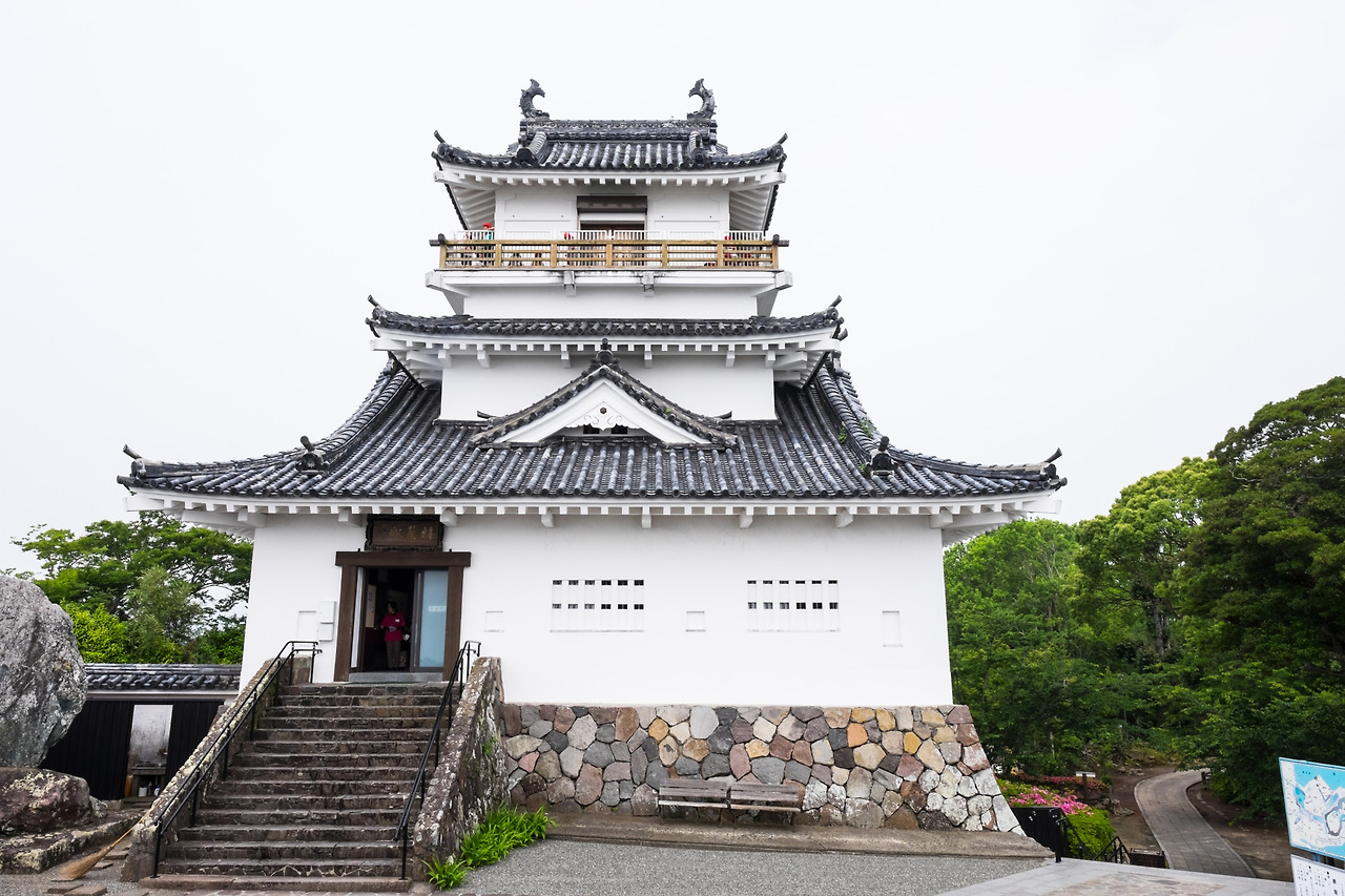 일본에서 가장 작은 성인 기쓰키 성. 성의 크기는 작지만 그 역사는 600년이 훌쩍 넘었다. 성이 지어진 때는 무로마치 시대인 1394년으로 시대를 거치며 성의 주인은 바뀌었고, 1970년 천수각 복원 작업을 통해 공원으로 조성되었다. 기쓰키 성은 삼면이 막힌 천혜의 요충지에 세워진 성으로 강과 바다가 만나는 하구에 지어졌다. 성 뒤쪽에는 바다가 버티고 있고, 양 옆으로는 강물이 흐른다. 기쓰키 성 아래 주차장에 차를 세워두고 성으로 향하는 계단을 따라 올라가면 기쓰키 시내에서 가져온 석조물들이 보인다. 이 석조물들을 지나 조금만 더 올라가면 천수각이 모습을 드러낸다.