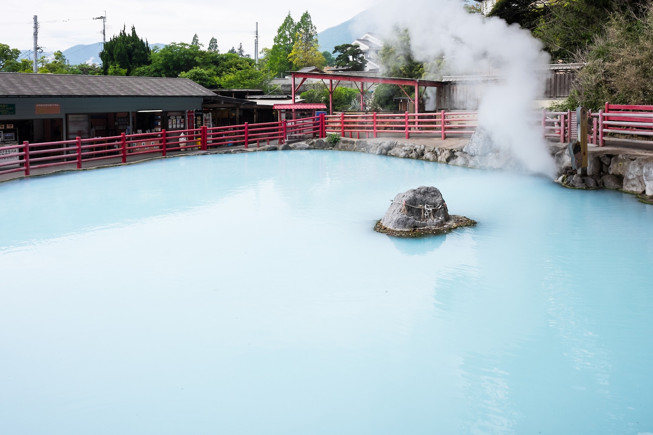 벳푸 지옥 중 가장 큰 규모를 자랑하는 우미 지옥은 코발트빛 바다색을 띠고 있다. 시원한 바다색이지만 우미 지옥의 온천수 온도는 섭씨 98도. 우미 지옥이 생겨난 건 지금으로부터 약 1,200년 전인 츠루미다케(鶴見岳)의 화산 폭발로 거슬러 올라간다. 화산이 폭발하면서 지하에 있던 용암이 빠져나가고 그 자리에 커다란 싱크홀이 만들어졌다. 이 싱크홀에 온천수가 채워지면서 지금의 우미 지옥이 되었다. 무서운 ‘지옥’이라고 부르기에는 온천수의 색깔이 너무도 신비롭다. 여기에 뜨거운 열기로 인해 발생하는 하얀 수증기까지 더해져 묘한 분위기를 만든다.
