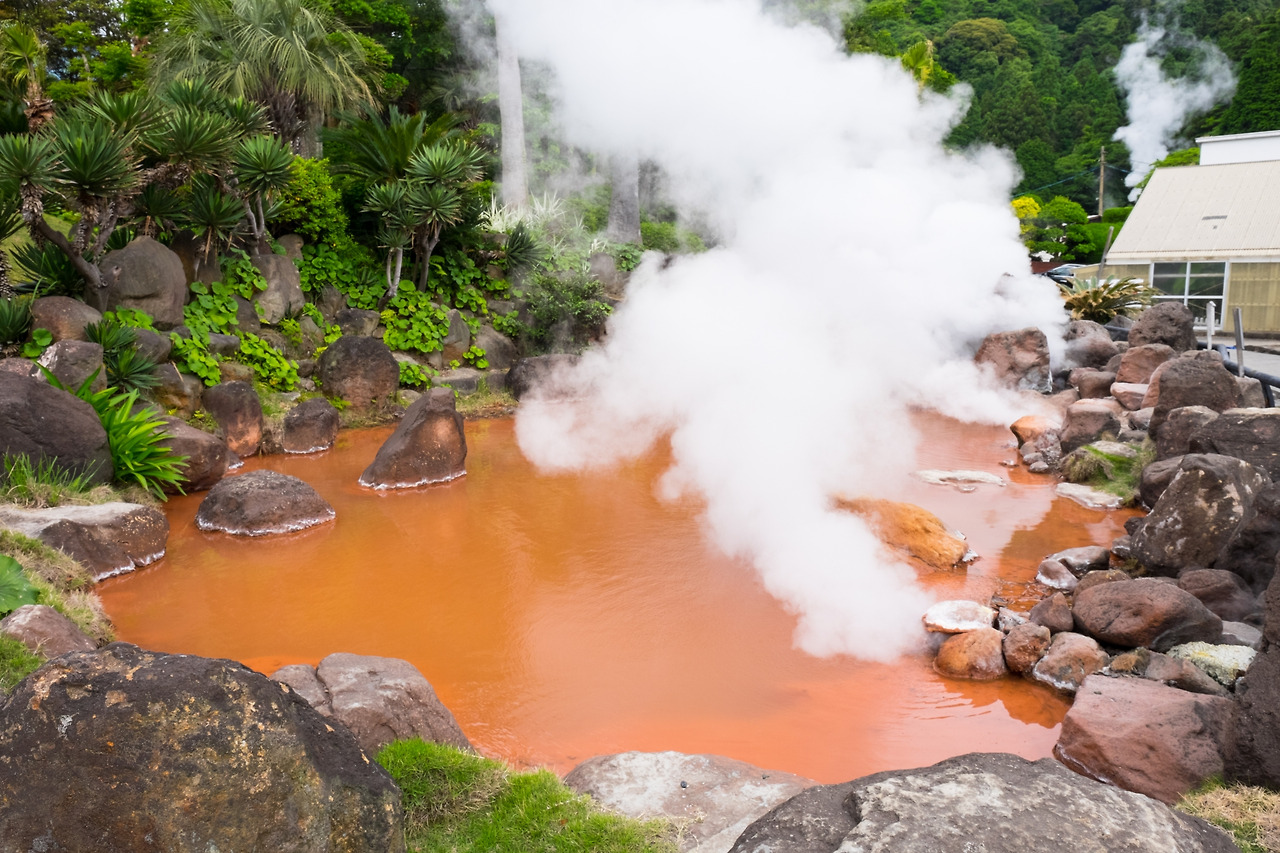 끓고 있는 대지의 신비로움 벳푸는 일본에서 온천수가 가장 많이 솟아나는 도시이자 세계 2위의 용출량을 자랑하는 온천 도시다. 도시 전체가 끓어오르고 있다는 표현이 어울릴 만큼 하얀 수증기가 도시 곳곳에서 솟아오르고 있다. 이러한 온천 도시 벳푸 여행의 필수 코스가 바로 벳푸 지옥 순례다. 벳푸 관광의 상징과도 같은 벳푸 지옥 순례는 1910년 우미 지옥에서 처음으로 입장료를 받으며 시작되었다. 이후 다른 지옥들이 추가되었고, 1920~30년대 일본에서 자동차 관광이 활성화되면서 전세 버스를 타고 지옥을 순례하는 투어가 본격적으로 이루어지게 되었다. 이때 일본 최초로 여성 가이드의 안내로 2시간 30분 동안 벳푸 내 지옥들을 돌아보는 투어가 진행되어 큰 인기를 끌기도 했다.