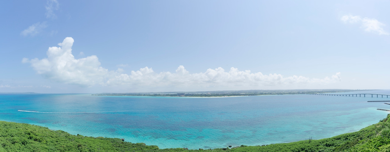 천연 수영장에서 스노클링을 즐기는 여행자들이 보이고, 해변공원 산책로를 따라 30m 바위 산에 올라 미야코 블루를 감상하는 여행자들도 있다. 전망대 위에서 바라보는 미야코지마의 바다는 말로 설명하기 힘들 만큼 아름답다. 바닷속에 있는 산호초가 검은 반점으로 보이고, 물의 깊이에 따라 바다색이 화려하게 빛난다.