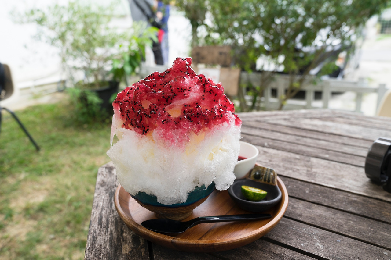 주문한 빙수는 오키나와 전통 도자기 위에 수북히 담겨 나온다. 추가 시럽까지 별도의 그릇에 담아주므로 반쯤 먹었을 때는 시럽을 다시 뿌려먹으면 된다. 무더운 날씨에는 빙수가 빨리 놓기 때문에 야외 테이블에 앉아 서둘러 빙수를 먹도록 하자!
