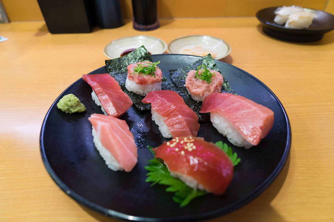 초밥 주문은 테이블에 놓인 태블릿 PC를 이용하면 된다. 원하는 초밥 수량을 선택해 주문하면 알림과 함께 테이블 옆 컨베이어 벨트로 초밥이 배달된다. 가장은 테이블에 놓여져 있고, 와사비는 켄베이어 벨트에서 가져오면 된다. 초밥 메뉴 외에도 우동, 라멘, 덮밥, 만두, 튀김 등 일반 식사 메뉴도 준비되어 있다. 1인 예산 1,500~2,000엔 정도면 배불리 초밥을 맛볼 수 있다.