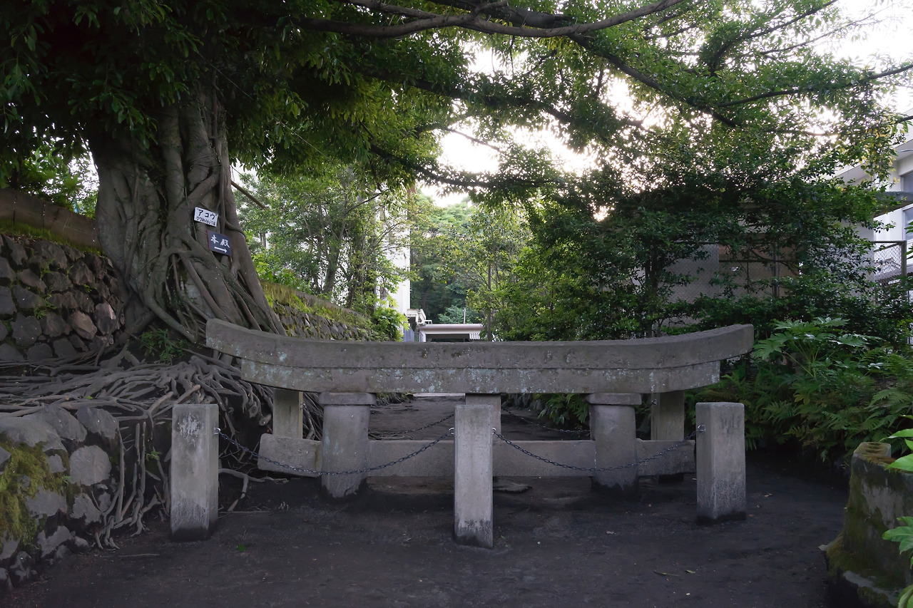 사쿠라지마 동쪽 해안에 있는 쿠로카미 매몰 도리이는 1914년 일어난 다이쇼 대분화의 생생한 현장을 느낄 수 있는 장솓. 다이쇼 대분화는 100년 이내 일어난 화산 폭발 중 가장 큰 규모로 상공 8,000m까지 치솟은 화산재가 러시아 캄차카 반도까지 날아갔다고 전해진다. 물론 사쿠라지마에도 엄청난 화산재가 쌓였는데, 약 3m 높이의 신사 앞 도리이가 2m 가량 묻힐 정도로 많은 양이었다. 쿠로카미 매몰 도리이는 땅에 파묻힌 듯 상단 부분만 남고 나머지 부분은 모두 화산재로 덮여 있다. 100년 전 일어난 거대한 화산 폭발의 규모를 증명하는 유적지로 1963년 가고시마 천연기념물로 지정되었다.
