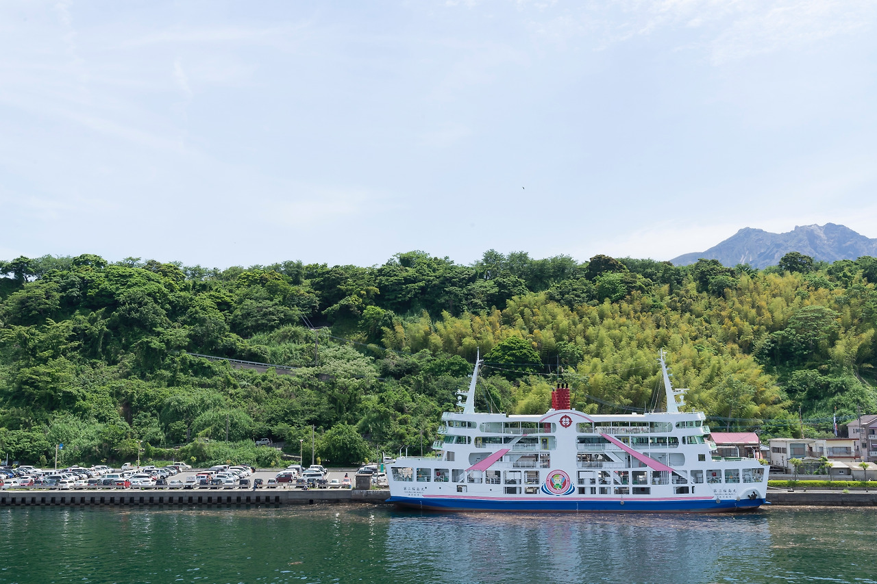 사쿠라지마를 돌아볼 때는 버스보다 렌터카가 더 편리하고 효율적이기 때문에 렌터카를 대여 했다면 페리에 렌터카를 싣고 사쿠라지마로 향하자. 페리에 자동차를 실을 때는 마치 톨게이트를 지나는 것처럼 자동차를 타고 요금을 지불한 다음 바로 페리로 들어가면 된다. 승선과 하차가 매우 편리하며, 자동차를 페리에 싣고 난 다음에는 갑판으로 올라가 사쿠라지마와 가고시마 시내의 풍경을 감상하면 된다.