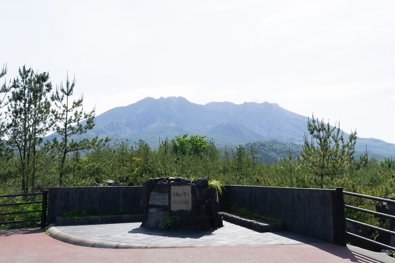 사쿠라지마 화산을 바라볼 수 있는 또 다른 전망대, 카라스지마 전망대. 이 전망대가 있는 곳은 약 100년 전까지만 해도 사쿠라지마 옆 작은 무인도 카라스지마(烏島)가 있던 곳이다. 1914년 다이쇼 대분화 때 흘러나온 용암이 500m 크기의 작은 무인도 카라스지마를 집어 삼켰고, 지금은 섬이 아닌 육지로 연결되었다. 과거 카라스지마에 있던 자리에 세워진 전망대라 카라스지마 전망대라고 부른다.