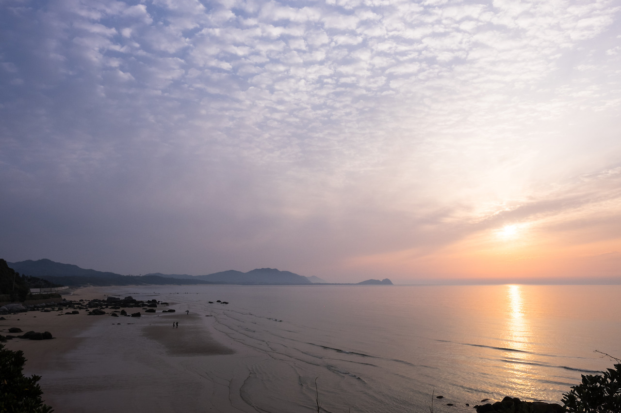 해 질 무렵 찾는다면 사쿠라이 후타미가우라의 또 다른 모습을 만날 수 있다. 붉게 물든 하늘과 수평선 너머로 사라지는 태양을 볼 수 있는데, 낮의 길이가 가장 길어지는 6월 하지(夏至)가 되면 두 부부 바위 사이로 태양이 내려앉는다. 이 아름다운 모습을 포착하기 위해 일본 전역에서 사진가들이 모여든다. 사쿠라이 후타미가우라는 일본인들이 꼽은 일본 석양 100선(日本夕陽百選)과 일본 작은 섬 100선(日本渚百選)에 선정되기도 했다.