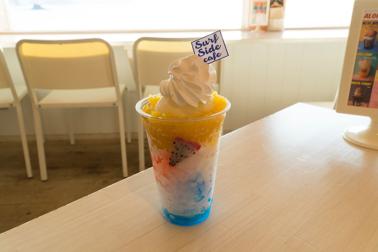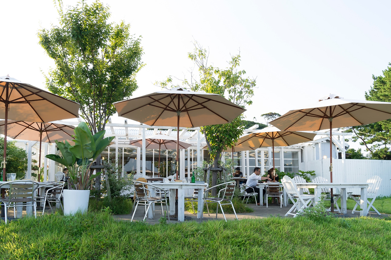 팜 비치 더 가든 내 여섯 점포 중 하나인 서프 사이드 카페. 카페 이름에서 알 수 있듯이 서핑을 주제로 한 곳으로 카페 로고에도 서핑 보드가 그려져 있다. 이토시마의 우윳빛 푸른 바다가 내려다보이는 언덕에 위치해 있어 바다를 바라보며 여유로움을 즐기기 좋은 카페다. 서프 사이드 카페 최고의 명당인 창가 좌석에 앉으면 저 멀리 이토시마의 상징인 사쿠라이 후타미가우라가 보이고, 해변을 거닐고 있는 사람들도 눈에 들어온다.