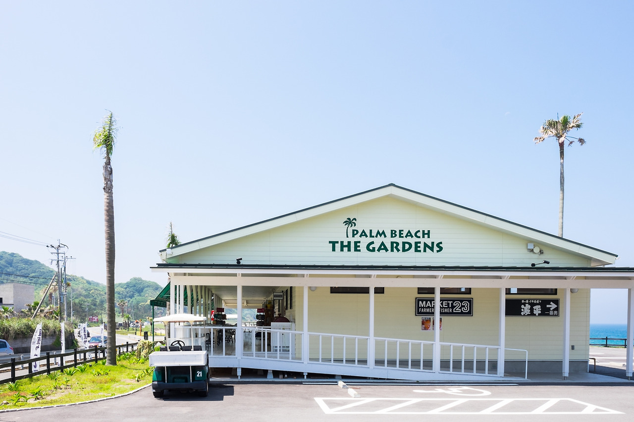 팜 비치 더 가든은 네 개의 동, 여섯 개의 점포로 이루어져 있다. 가장 먼저 이토시마의 바다를 바라보며 느긋하게 이탈리안 요리를 맛볼 수 있는 팜 비치 레스토랑이 있다. 그리고 흰색과 초록색 페인트를 칠한 팜 비치 더 가든의 메인 건물에는 쫀득한 젤라또와 와플을 파는 알파치노(Alpacino), 서핑 관련 용품을 판매하는 서퍼스 마켓(SURFERS MARKET), 나가사키 현 하사미에서 만든 도자기를 파는 헤이앤호(HEY&HO)가 있다. 메인 건물 옆에는 수제 버거와 시원한 열대 과일 음료를 맛볼 수 있는 서프 사이드 카페(SURF SIDE CAFE)가 있고, 마지막으로 이토시마 앞바다에서 잡은 신선한 오징어와 생선으로 요리를 하는 나미히라(波平)가 있다.