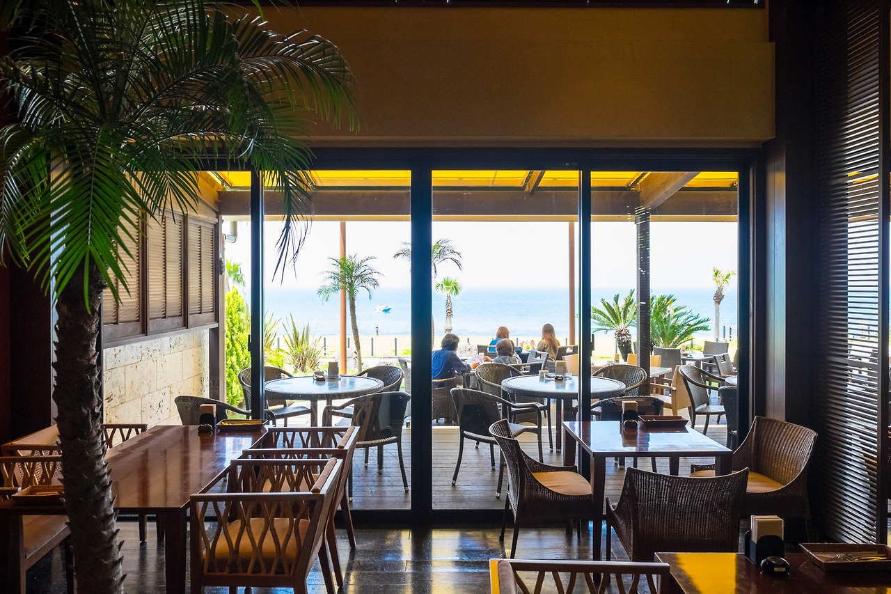 오후 4시부터는 푸짐한 디너 코스를 주문할 수 있다. 가격은 3,000~5,000엔 정도. 제대로 된 이탈리안 코스 메뉴를 맛볼 수 있으며, 붉게 물드는 하늘을 바라보며 낭만적인 식사를 즐길 수 있다. 만약 단품 메뉴를 주문하고자 한다면 언론과 방송에 소개될 만큼 인기를 누리고 있는 스파이시 갈릭 쉬림프(スパイシー ガーリックシュリ ンプ)를 추천한다. 팜 비치 레스토랑에서 만드는 요리에 들어가는 채소와 고기는 모두 이토시마산이며 겨울철을 제외하고 밤 10시까지 영업한다.