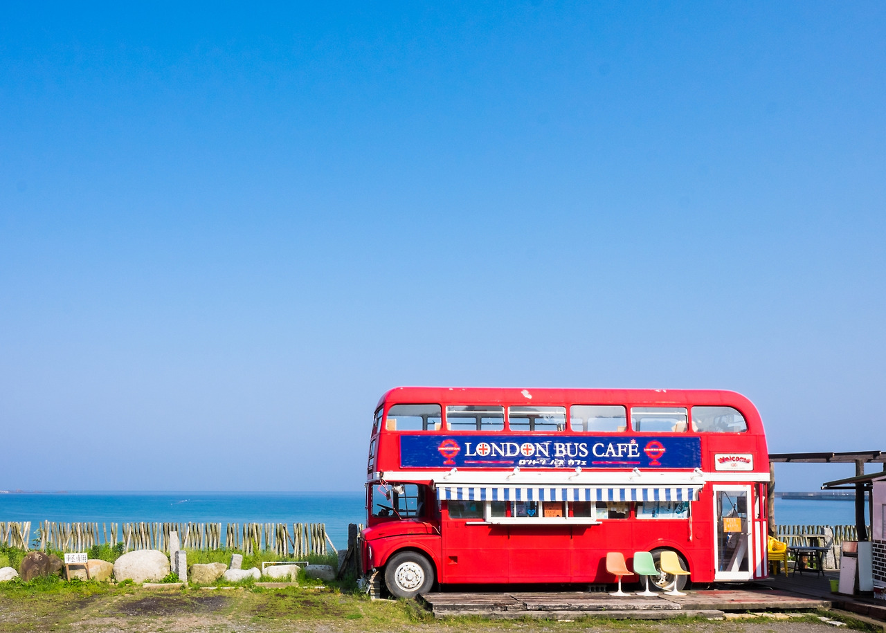 이토시마의 우윳빛 바다가 바라보이는 해안에 빨간 런던 버스 두 대가 세워져 있다. 이토시마의 이국적인 분위기를 더하는 런던 버스 카페는 이토시마를 방문한 여행자들이 모일 수 있는 장소를 만들겠다는 바람으로 문을 열었다. 그 바람대로 수많은 여행자들이 이 카페를 찾아 인증샷을 남긴다. 이토시마 관련 여행책과 잡지에서 빠지지 않고 등장하며 연예인과 모델들의 화보 촬영지로도 각광을 받고 있다. 인스타그램이나 페이스북에는 런던 버스 카페를 배경으로 찍은 사진을 심심치 않게 볼 수 있다.